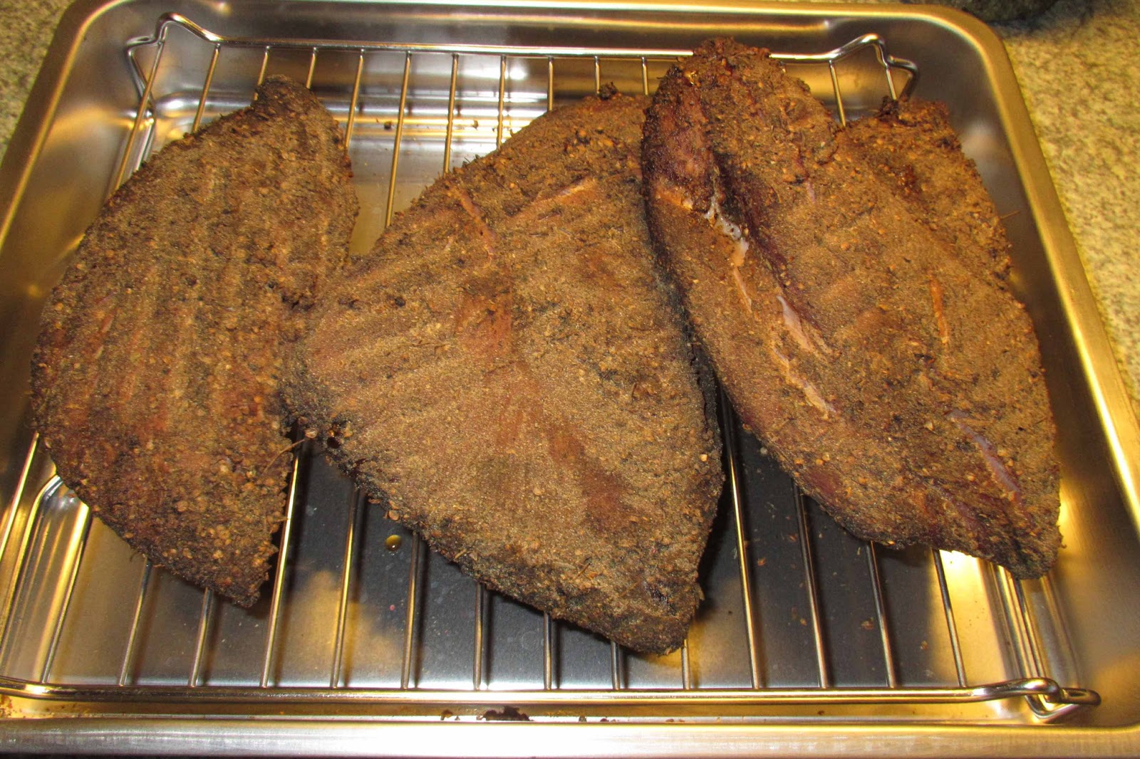 Über Nacht hat das Fleisch im Kühlschrank getrocknet.