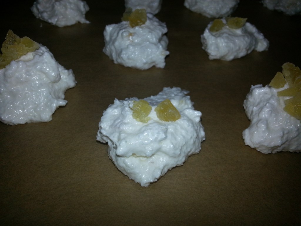 Die sehen so schön aus! Schneeweiß, glänzend, richtig gut. Ich frage mich grad, ob man die Masse auch mit dem Spritzbeutel aufbringen kann. Natürlich muss die Tülle groß genug sein, die Ananasstücke klein genug, dann kriegt man sicher eine perfekte Form hin. Aber ehrlich gesagt, das hier ist „hausgemacht“ und das darf dann auch so aussehen!