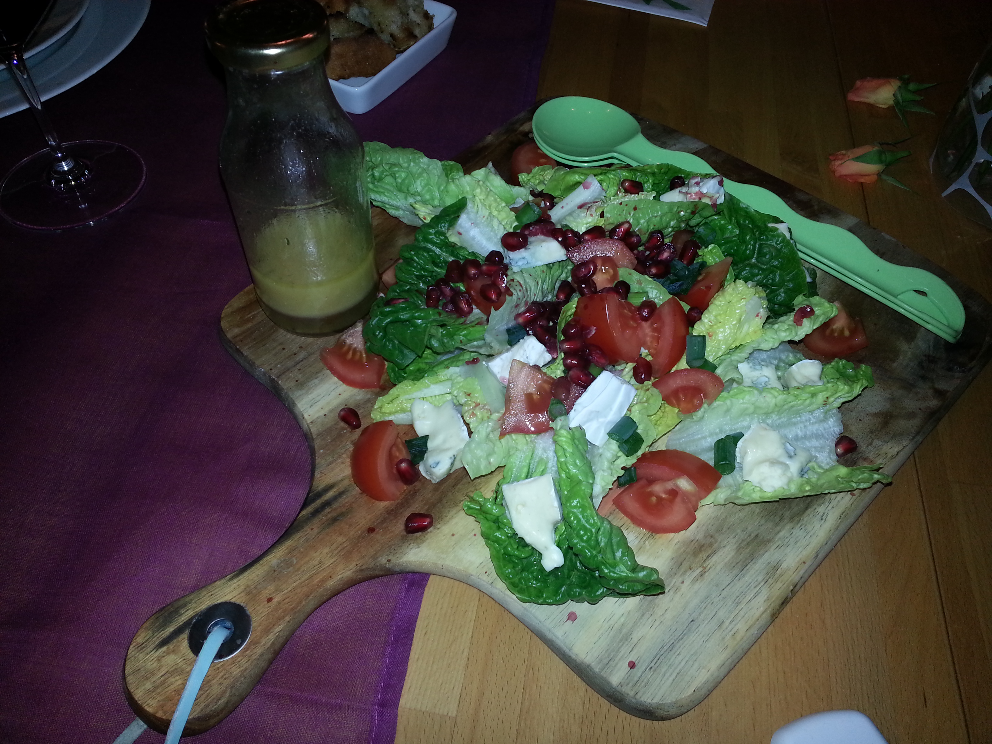 Salatherzen, Weichkäse mit Edelschimmel, Tomaten und Granatapfelkernen