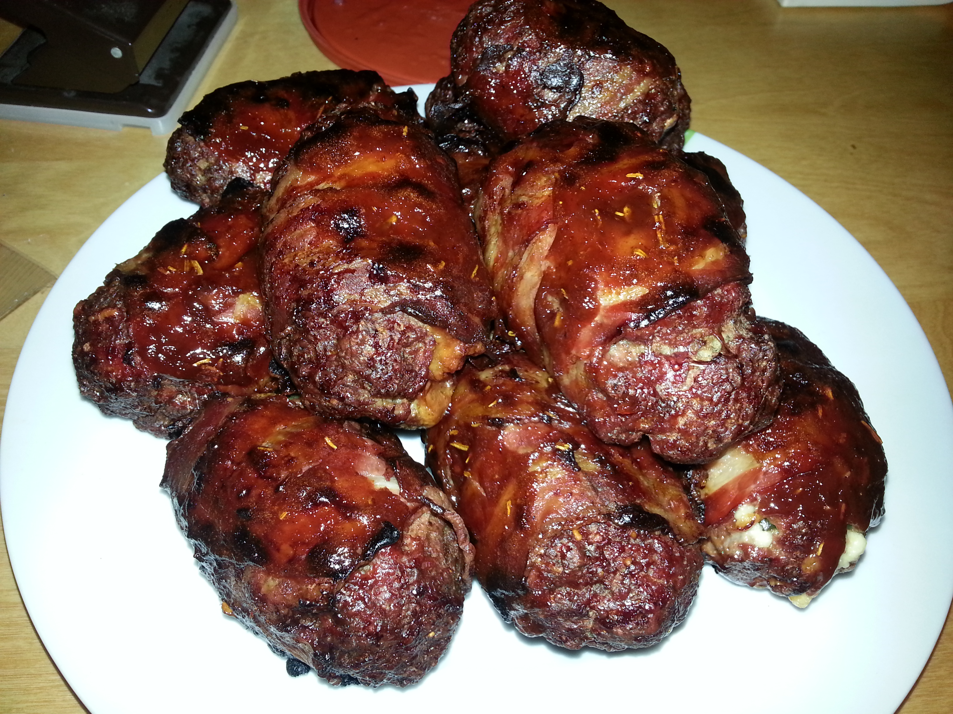 Anschließend werden die Eier indirekt auf dem Grill gegart (Temperatur zwischen 150 und 170Grad). Nach ca 30min werden die Eier mit BBQ Sauce bepinselt und bei direkter Hitze fertig gegrillt. Die Kerntemperatur sollte 80Grad betragen.