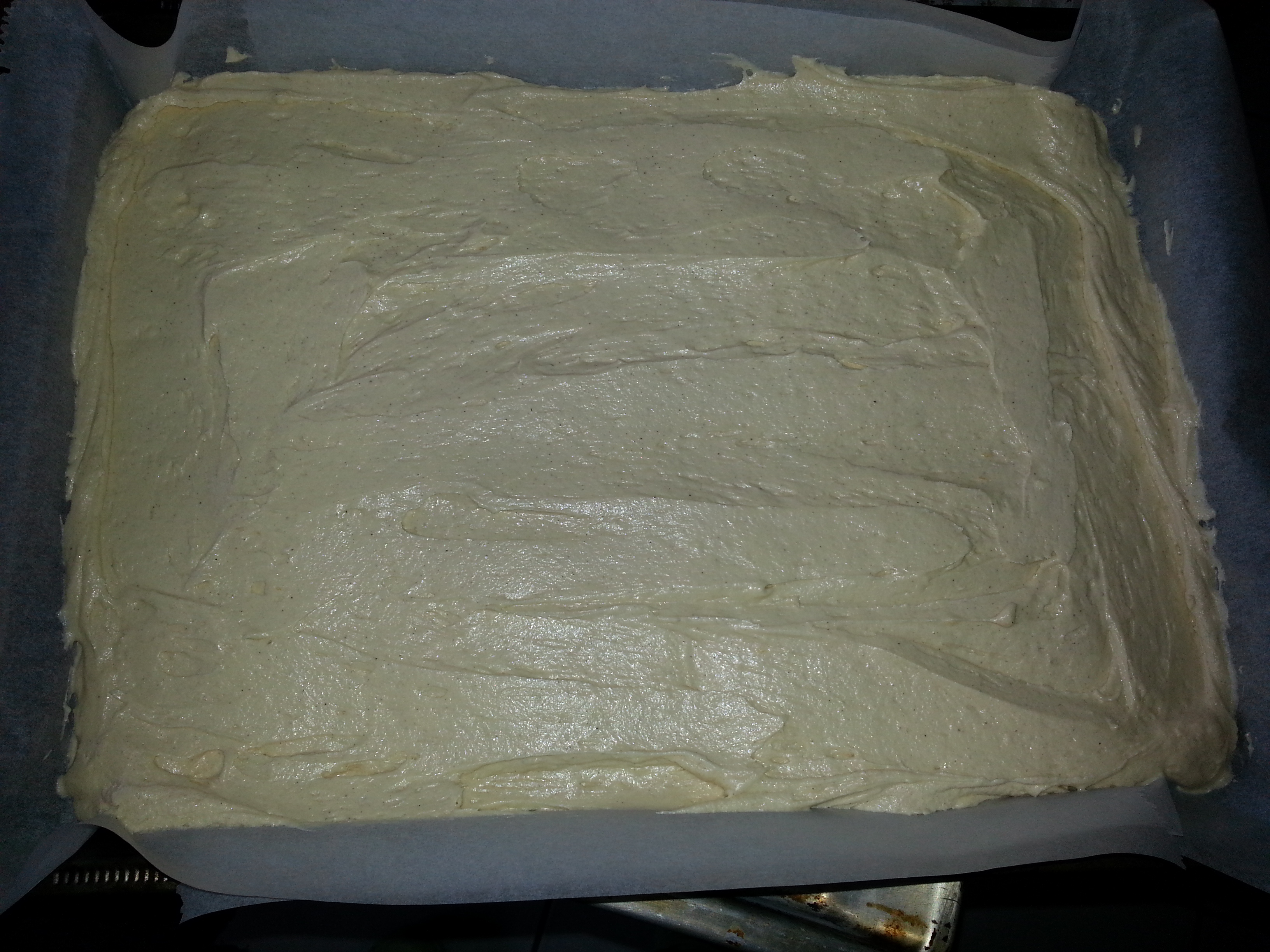 Die Zutaten ordentlich vermengen und auf ein tiefes Backblech geben.