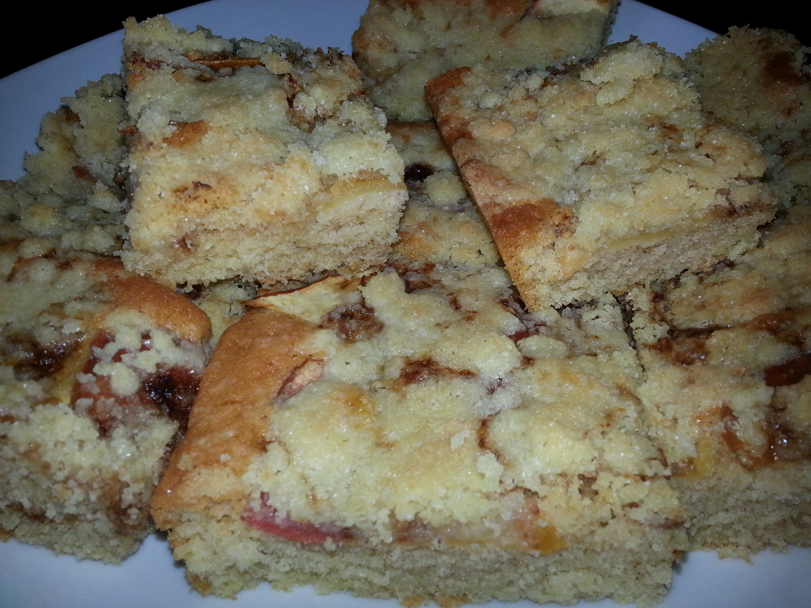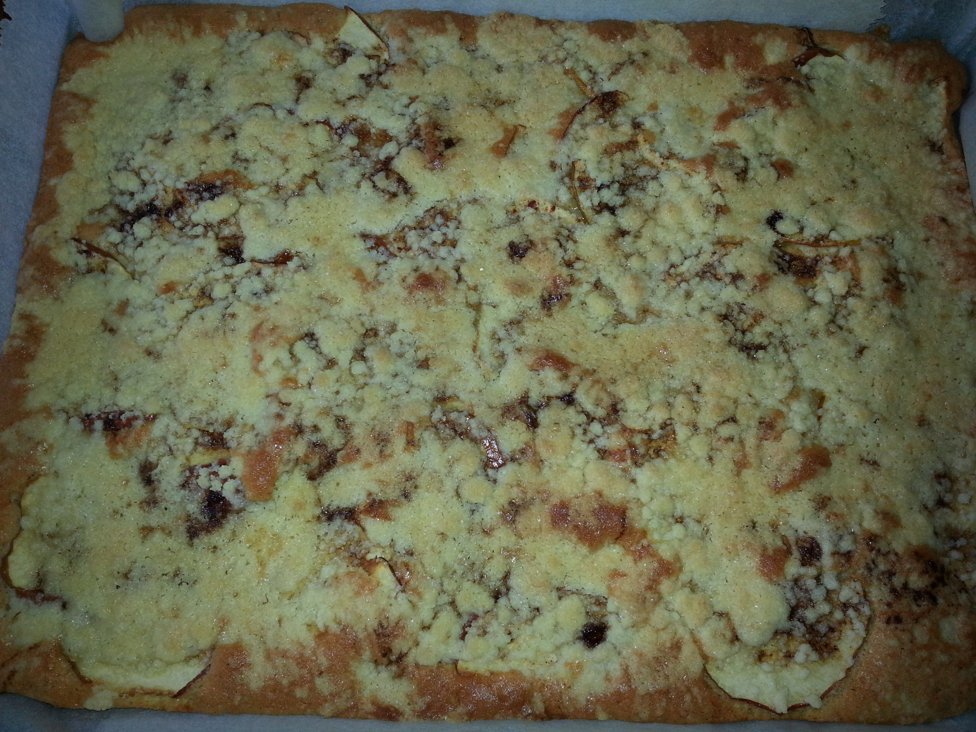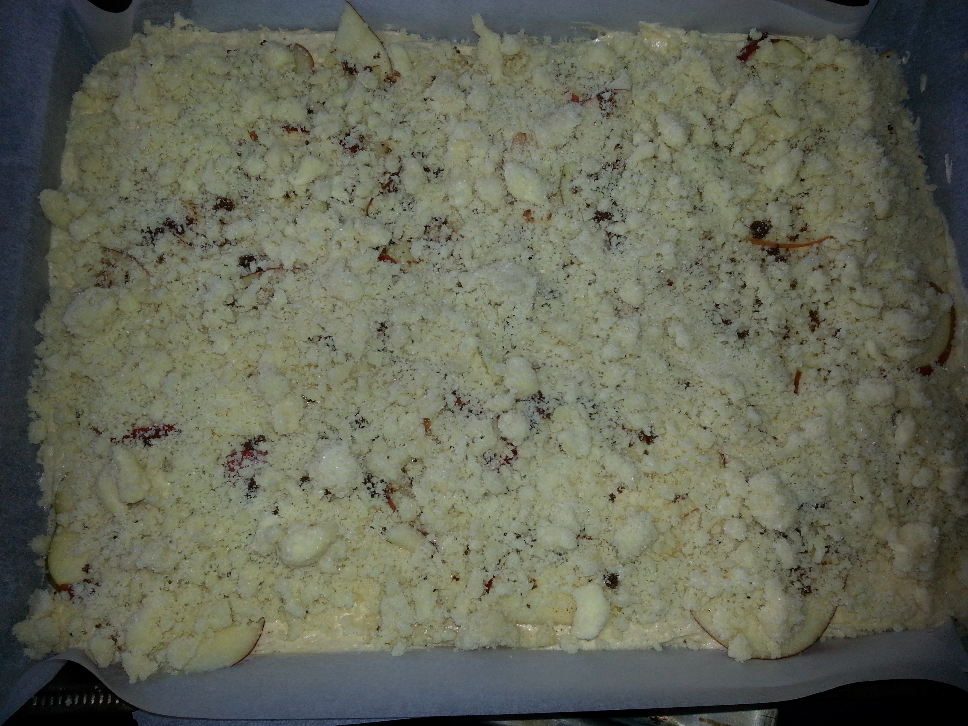 Backen bei 160-170Grad, Dauer, so ca 30min, bis die Streusel goldgelb sind.