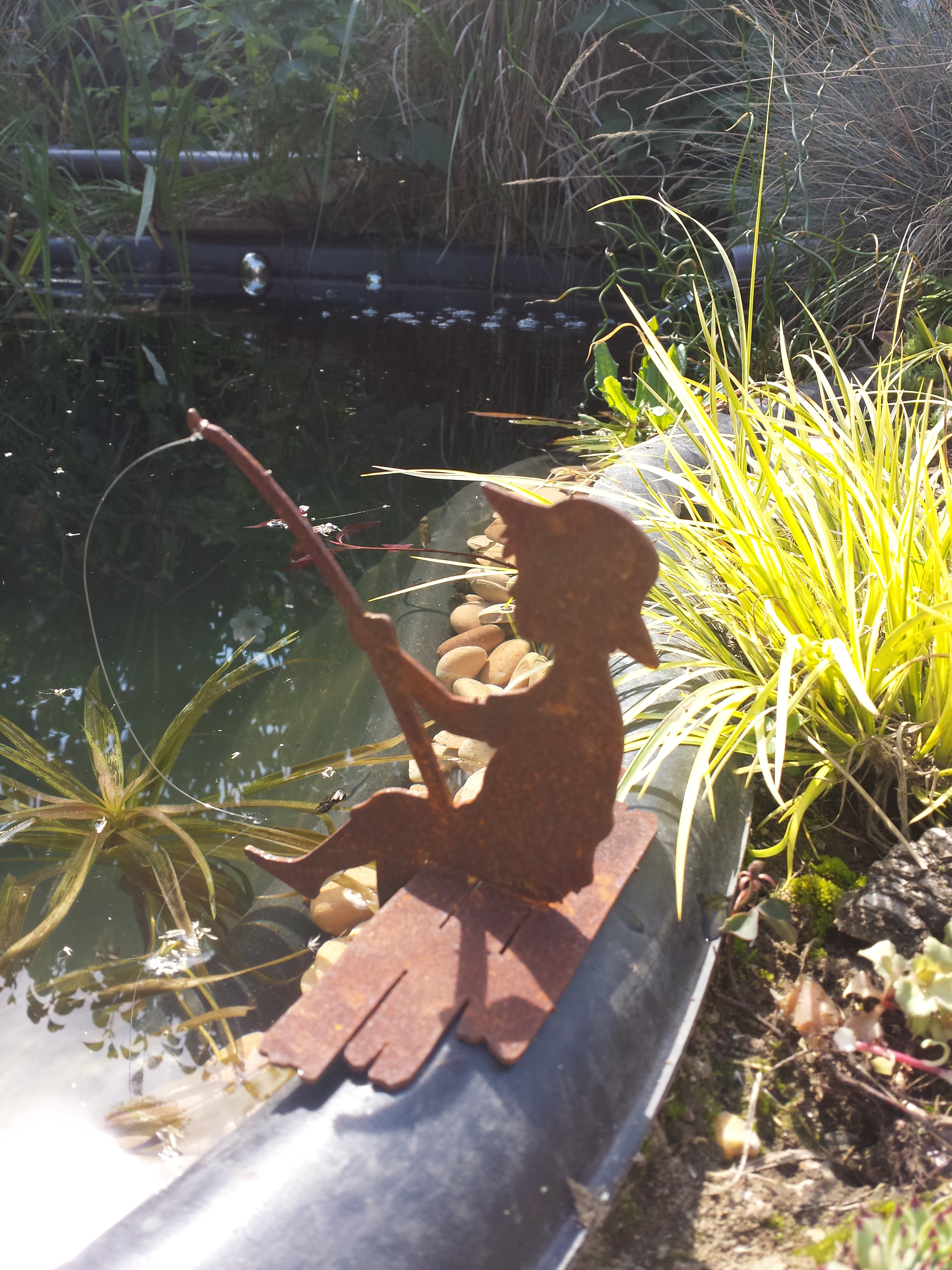 Mein Mann widmet sich mit Hingabe der Teichpflege. Neuer Sprudler, die Bepflanzung, das Entfernen der Algen, das Reinigen der Pumpe, da hat er Spaß dran. Ich muss gestehen, gefällt mir auch sehr!