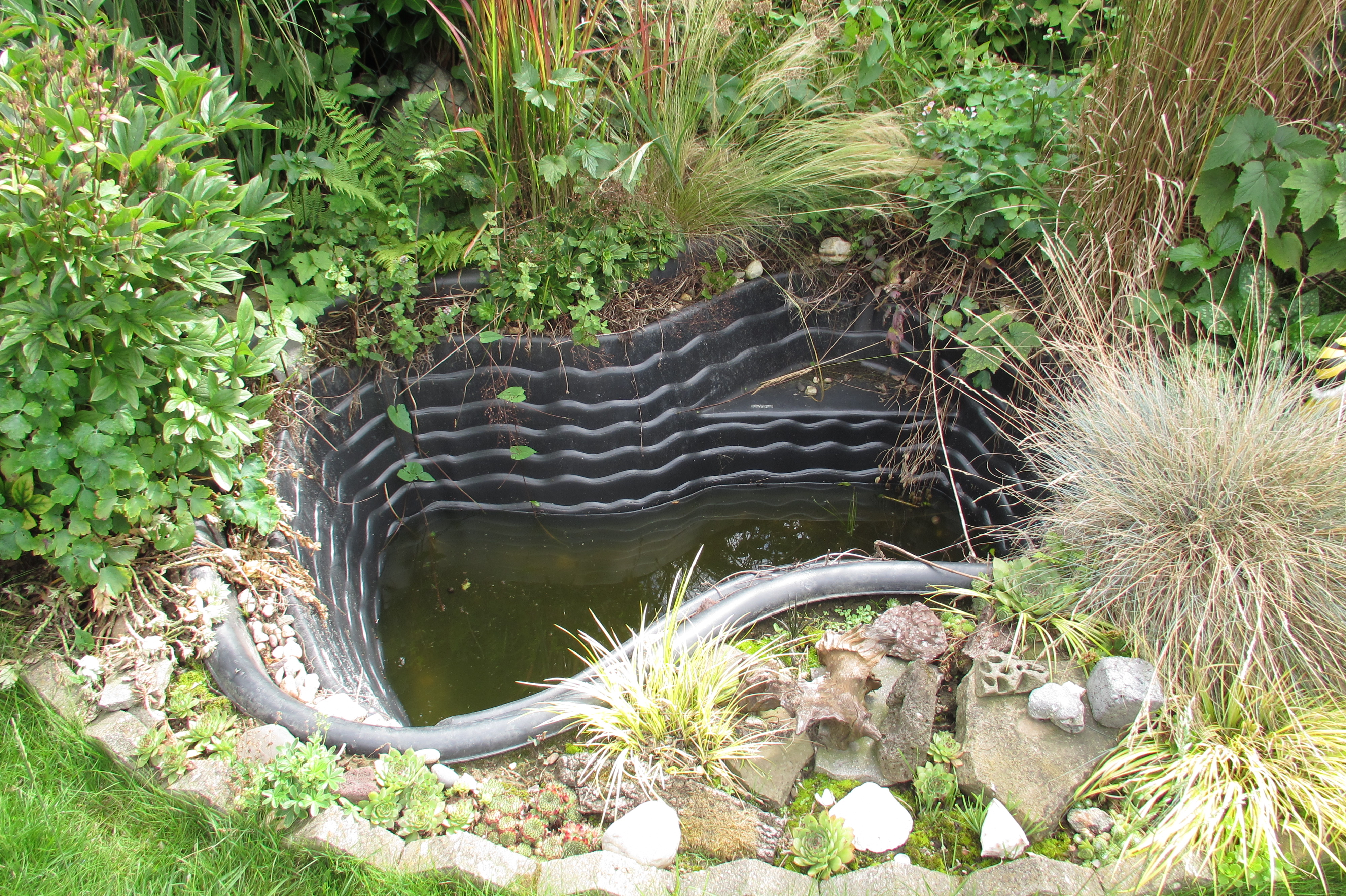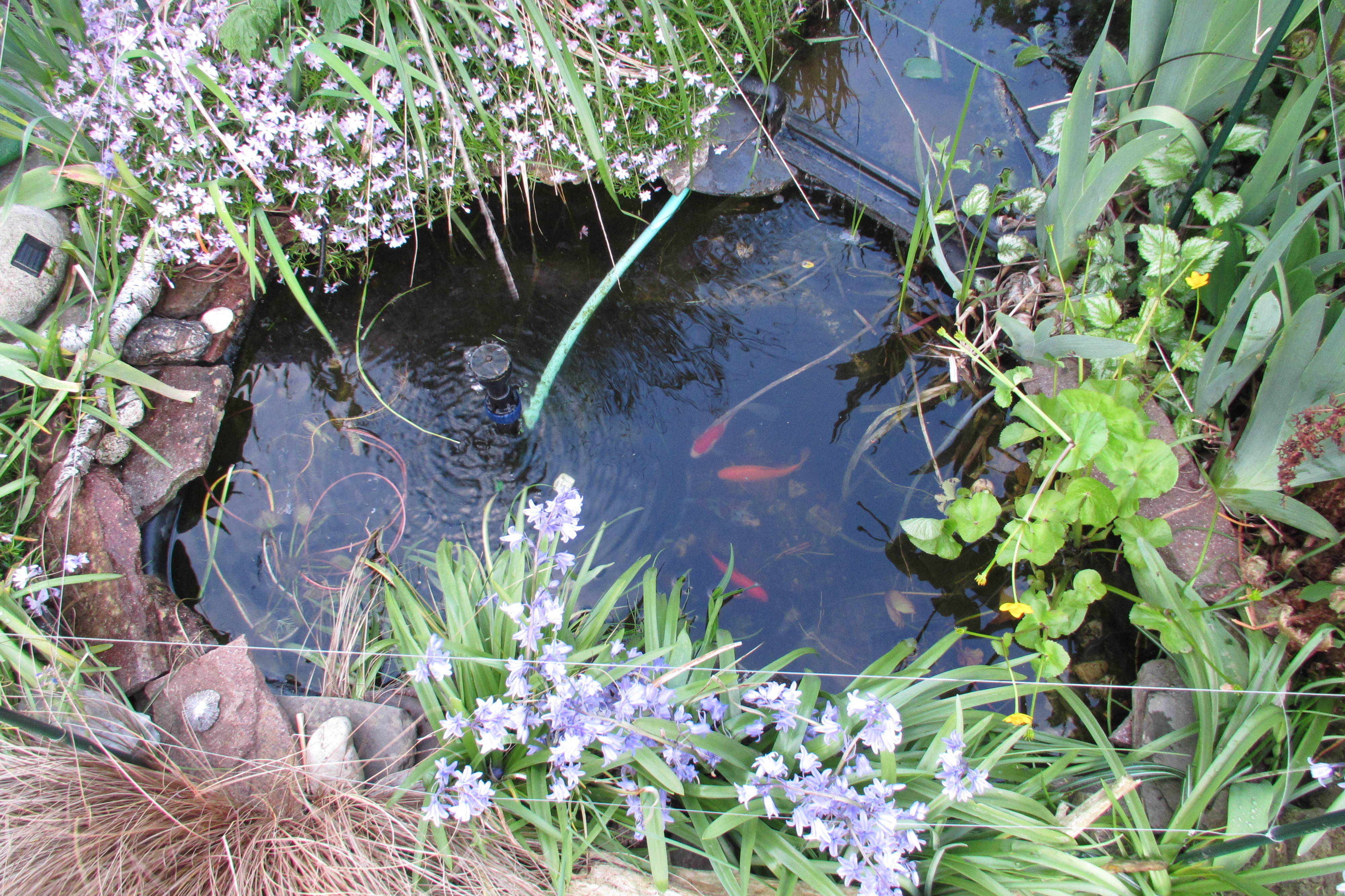 Beim Kauf unseres Häuschens waren im Garten 2 Teiche angelegt. Ein kleiner mit Bachlauf und ein großer, wo der Vorbesitzer Kois drin hatte.