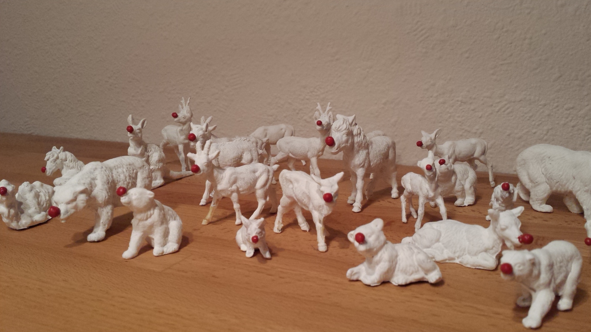 Schritt 7: „Red noses“ rot lackieren, nur die Nasen !, nicht die Schnauzen…..also nachbessern :0)