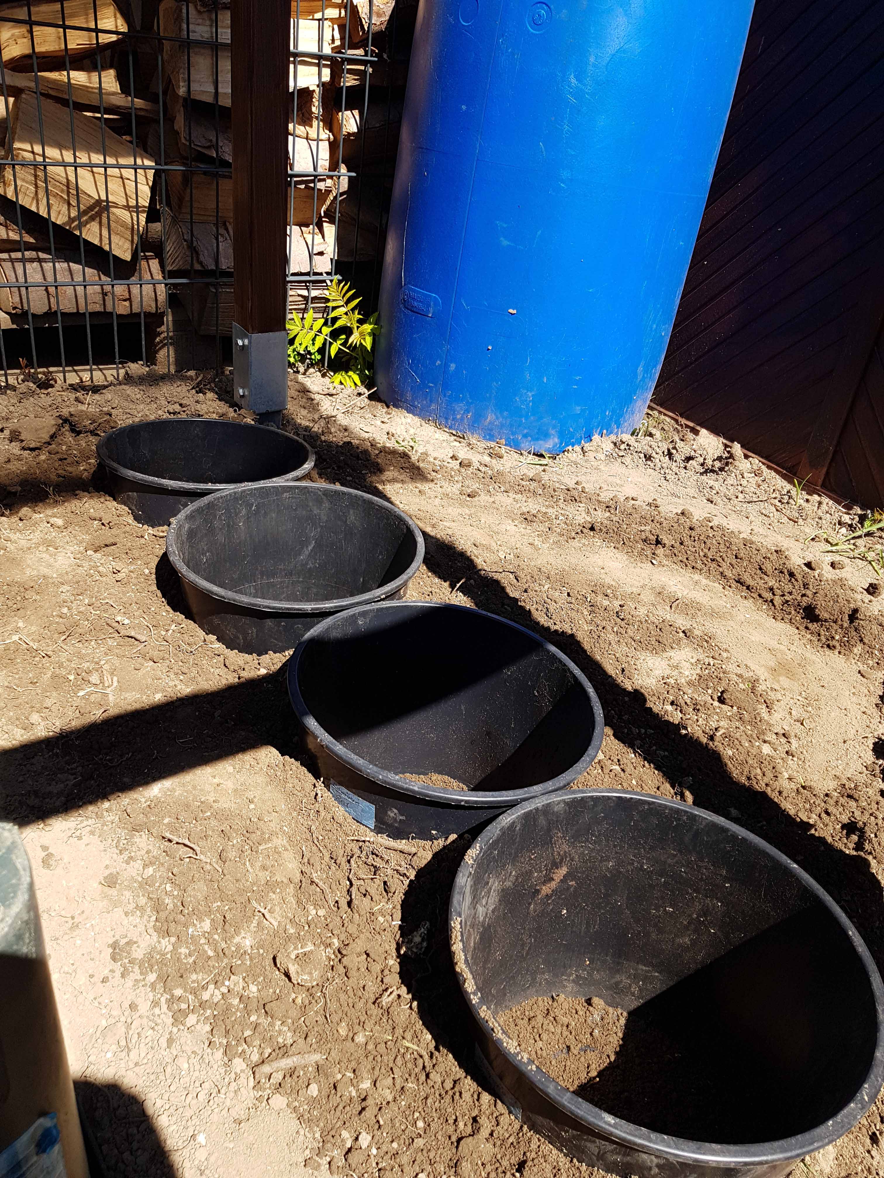 Da der Boden nicht so überragend toll ist, habe ich mich für Pflanztöpfe entschieden, die im Boden eingelassen sind.