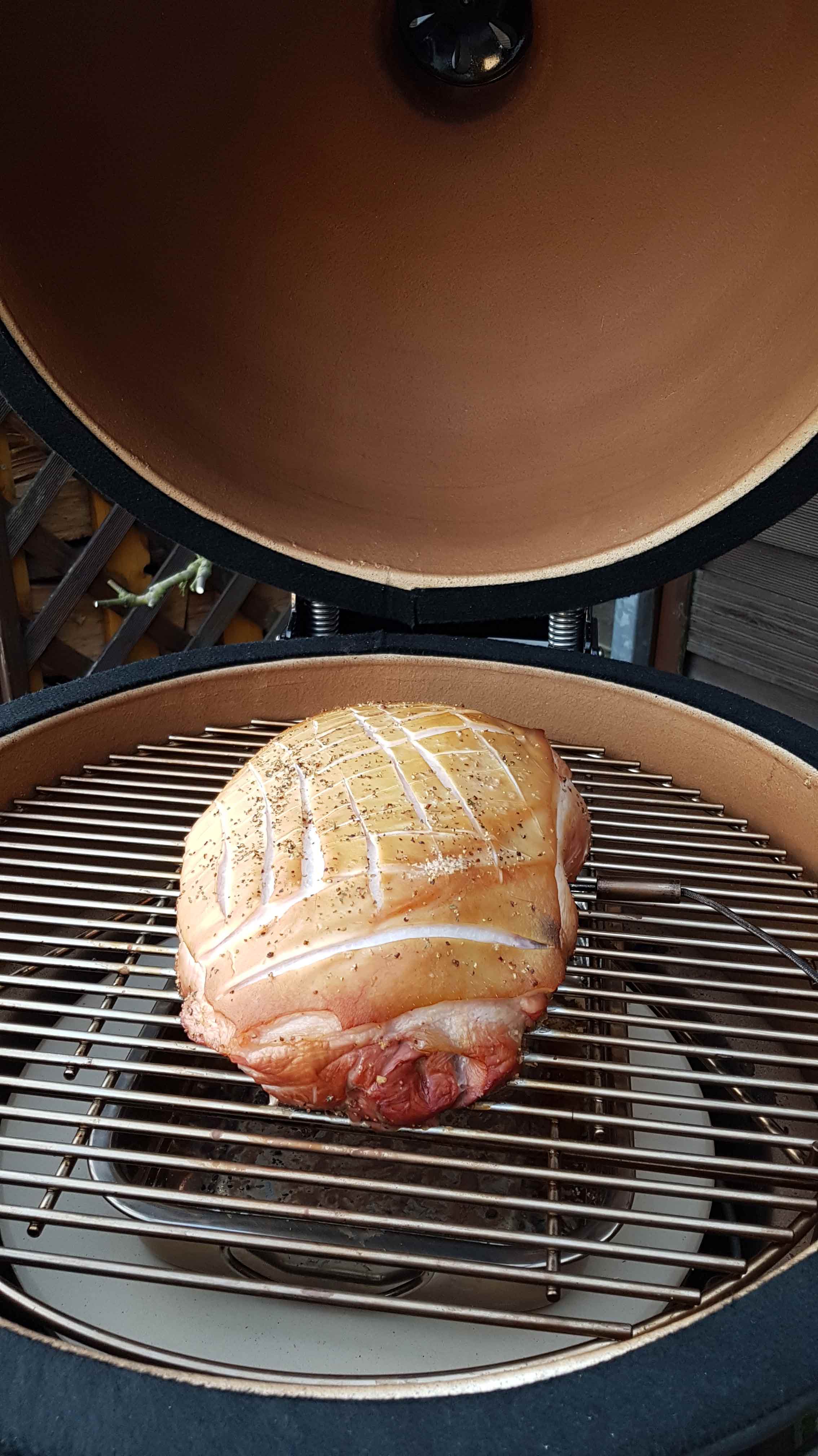 Den Schinkenkrustenbraten haben wir auf dem Kamado (siehe barbacoa.PRO) zubereitet, lässt sich aber auf jedem anderen Grill (indirekt) oder im Backofen zubereiten.