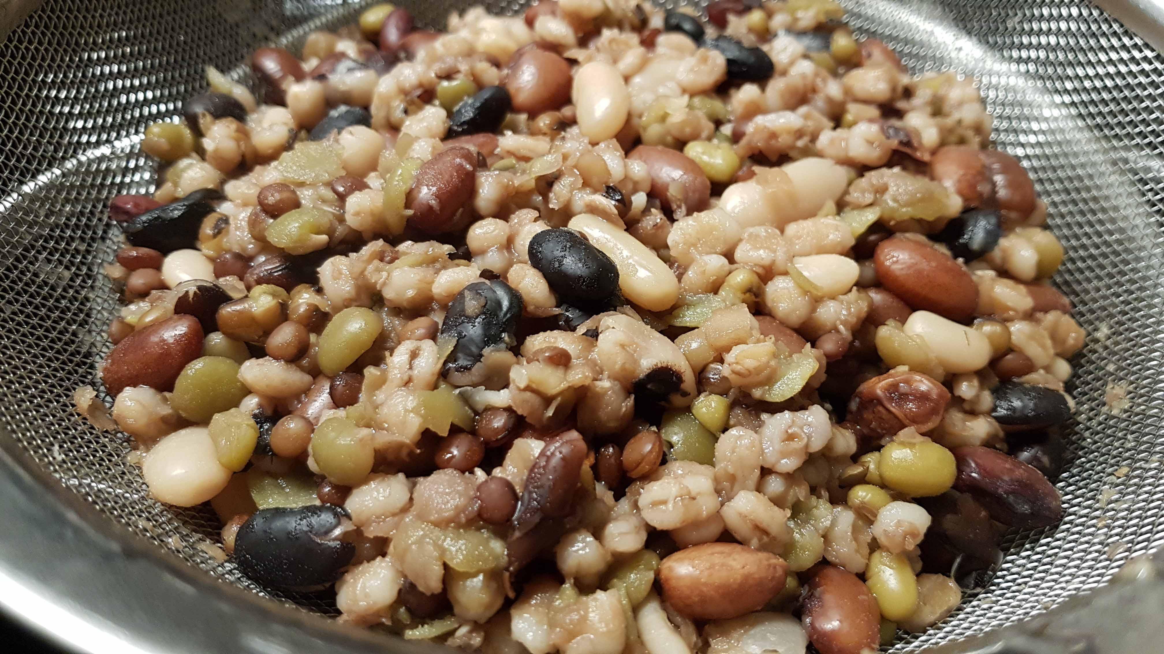 Die Hülsenfrüchte habe ich mit kaltem Wasser abgewaschen und in einem Topf mit Wasser zum Kochen gebracht. Anschließend 70 bis 80min bei kleiner Hitze köcheln lassen. Kurz vor Ende der Garzeit habe ich das Wasser ordentlich gesalzen.