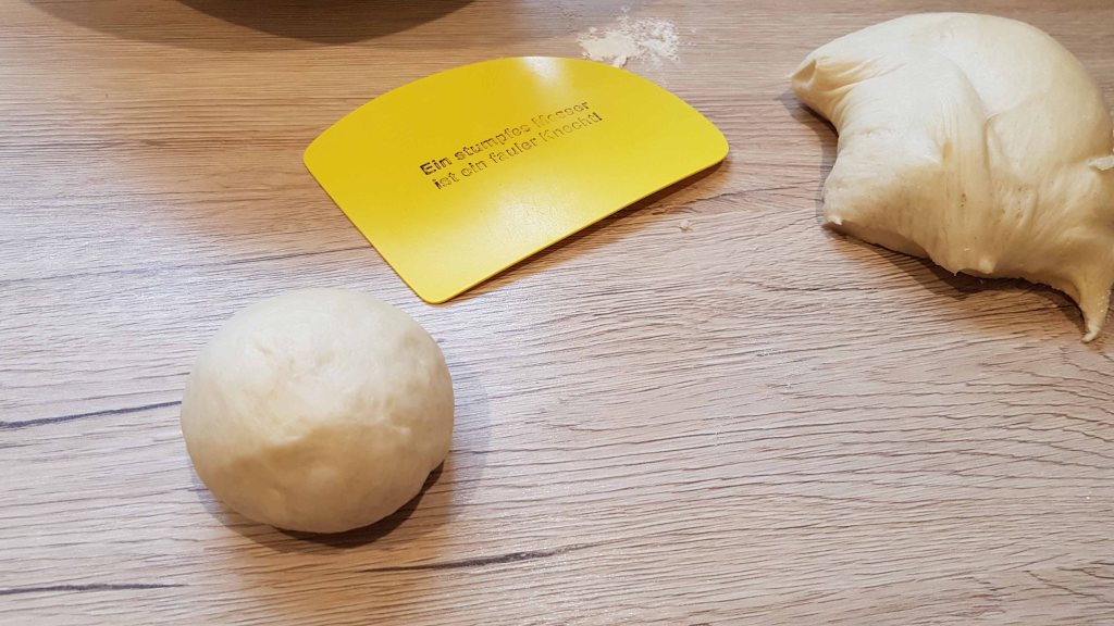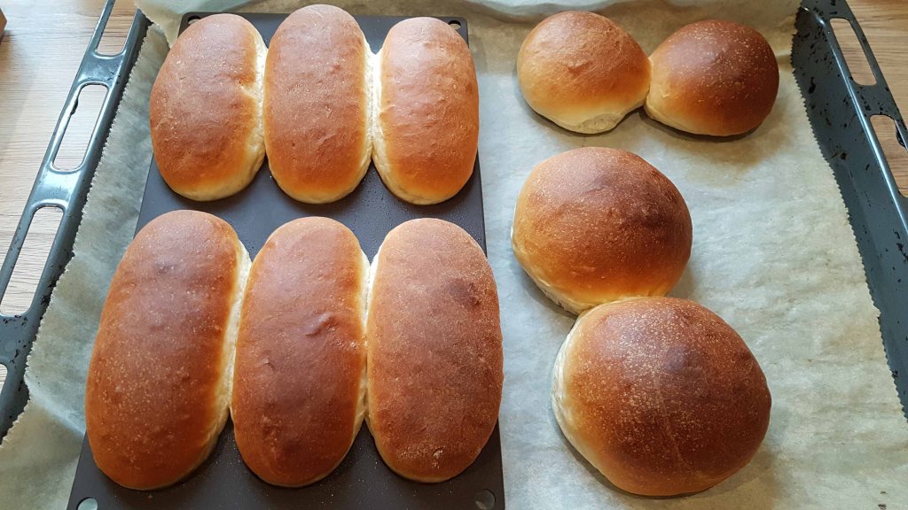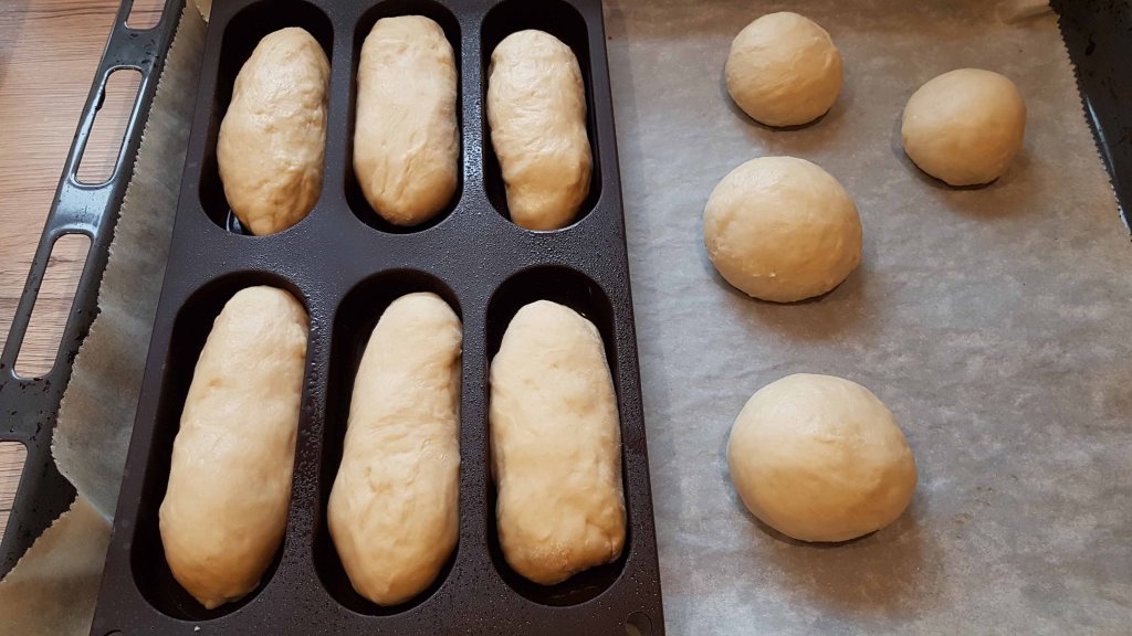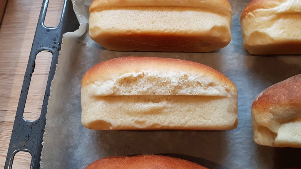 Für die Hot Dog Buns habe ich 100gr pro Bun genommen, besser wären 80-90g gewesen.