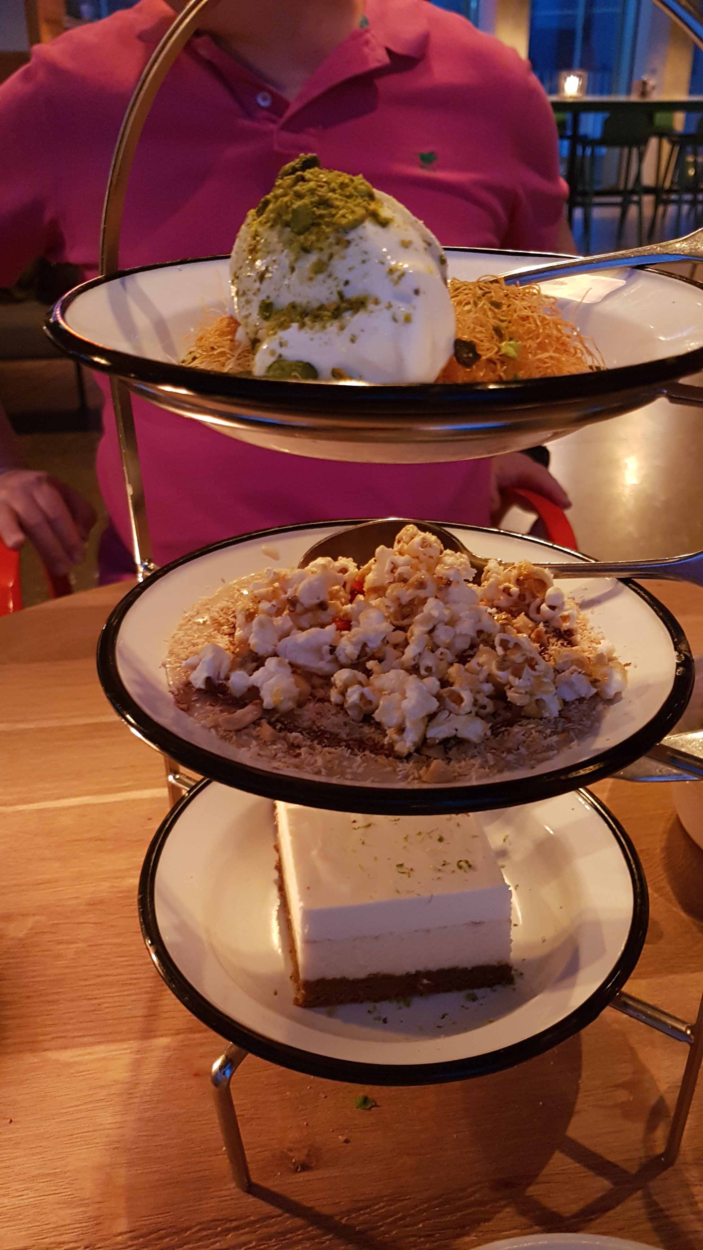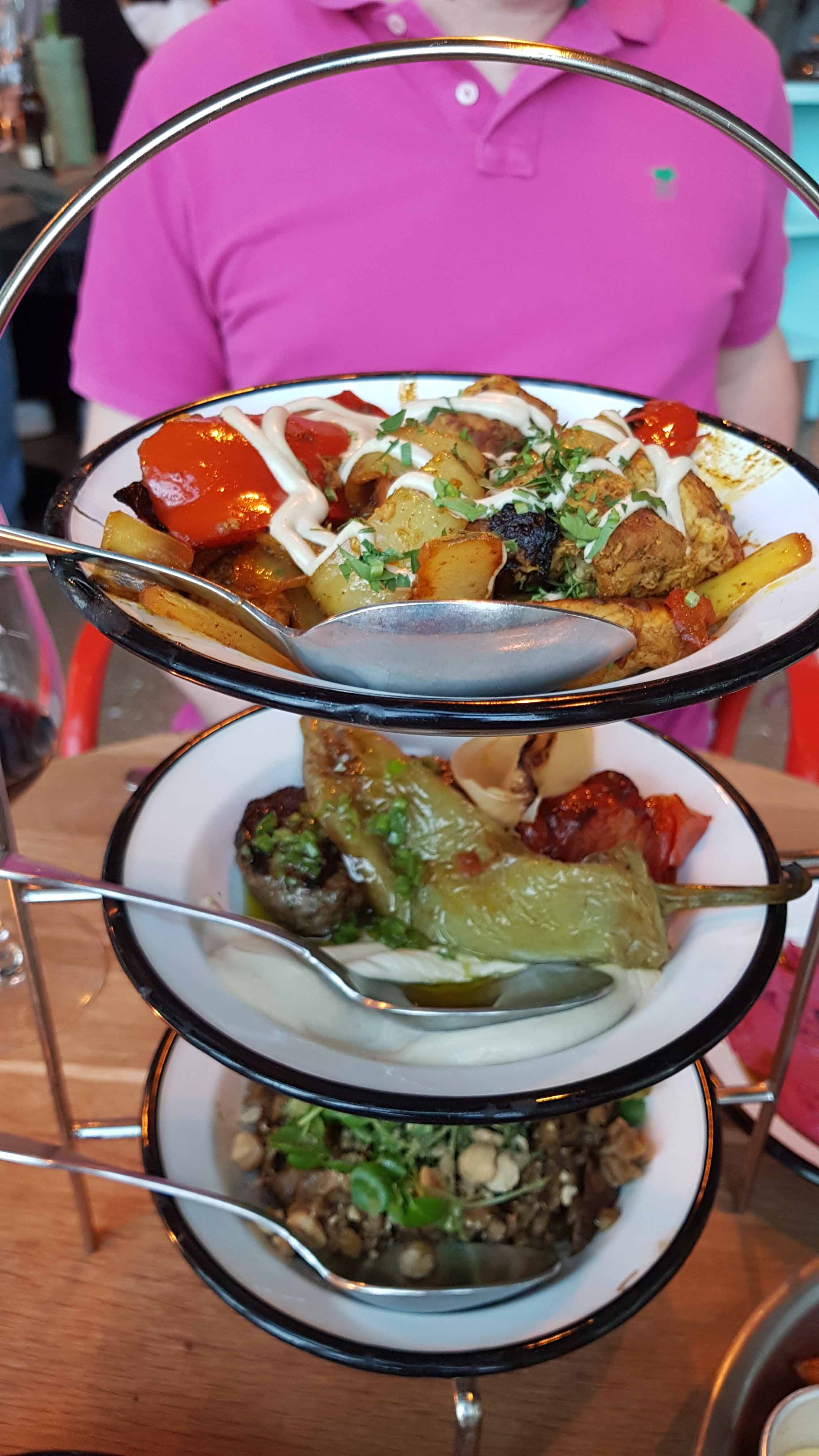 Wir entschieden uns für eine Auswahl an Kleinigkeiten, ähnlich Tapas, wo querbeet kleine Portionen aus der Speisekarte in Etageren dargereicht wurden. Eine Augenweide!
