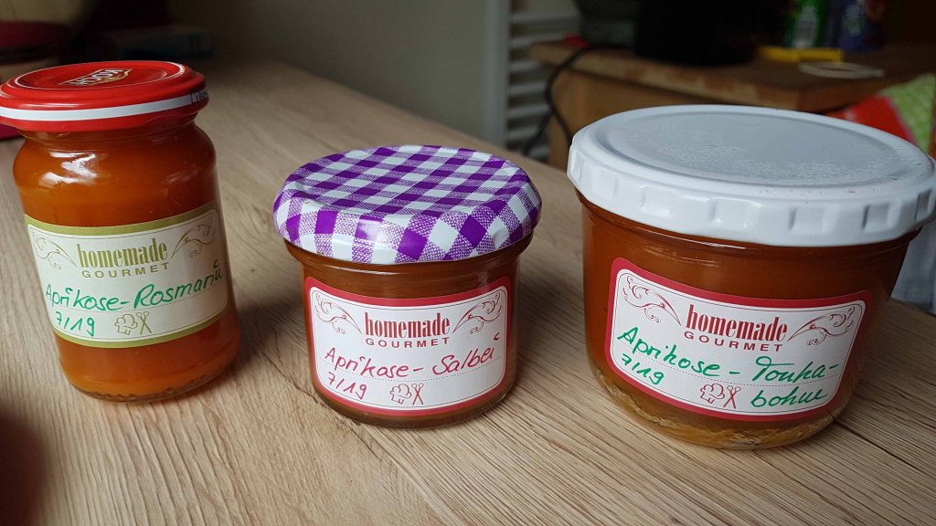 Die Aprikosen waren schön reif. Ein paar hatten dunkle Stippen, aber das störte nicht groß…..konnte man wegschneiden.