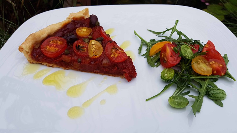 So nutze ich die Euphorie und stelle euch das bessere, überarbeitete Rezept für eine leckere Tomaten-Tarte vor. Die alte Version findest du hier.