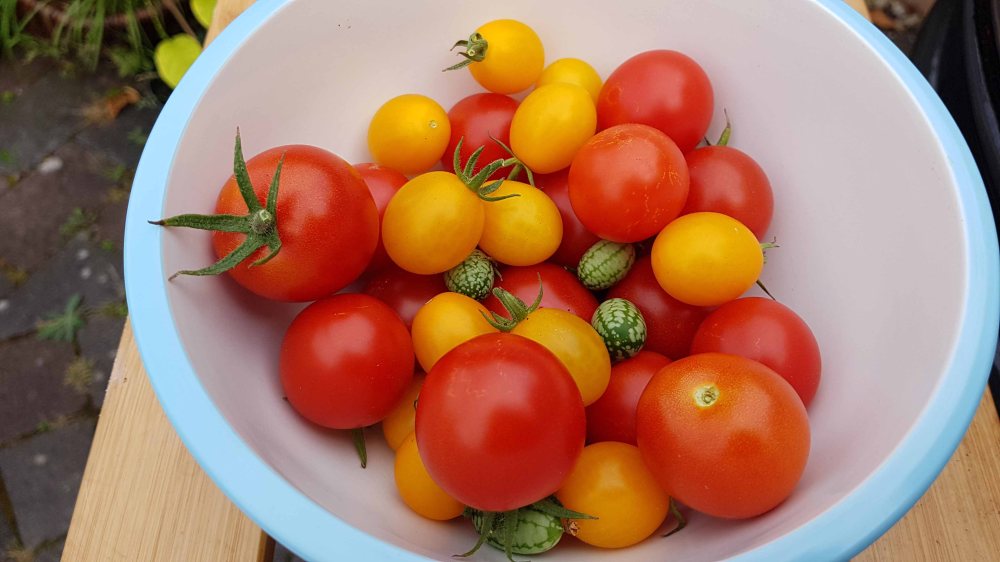 Die Erntezeit für Tomaten ist in vollem Gange. Noch freuen wir uns über jede Einzelne. Es wird aber nicht lange dauern dann werden wir mit Tomaten überschwemmt sein und sie werden uns aus den Ohren kommen. Das ist jedes Jahr so. Klasse, wenn man dann eine Plan hat, was man tolles mit den Tomaten anstellen kann.