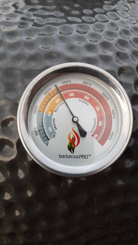 So, der Kamado wurde mit Holzkohle bestückt und mit dem Deflektorstein auf indirektes