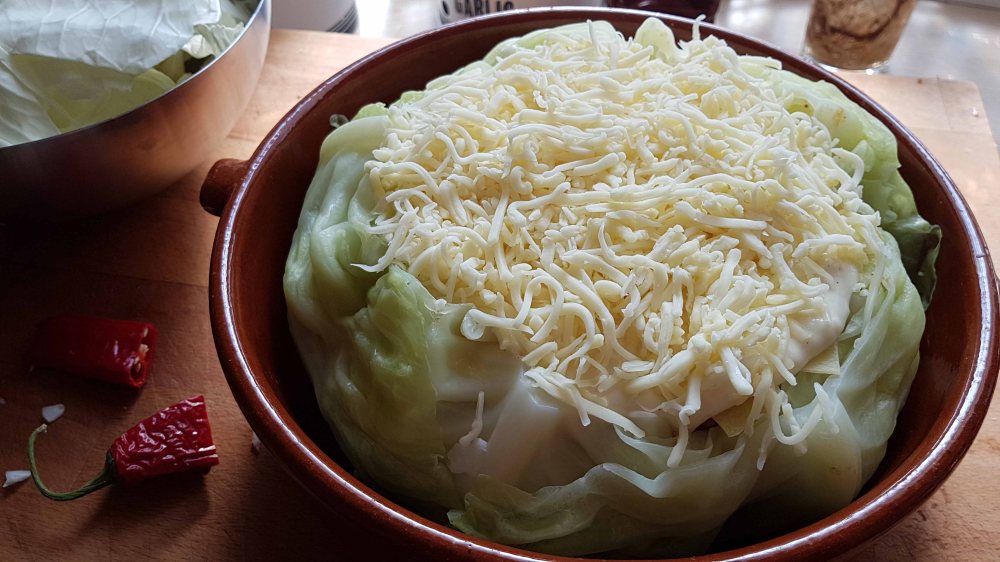 Statt einer Auflaufform einfach mal einen ausgehöhlten Kohlkopf benutzen.