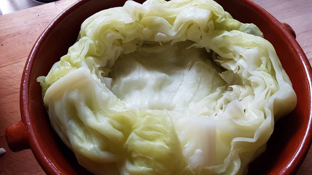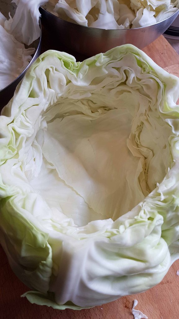 Den Kohlkopf vorzubereiten ist eigentlich das aufwendigste an dem Gericht. Schwierig ist es nicht. Du musst nur vorsichtig vorgehen, damit du den Kohl nicht aus versehen mit dem Messer durchstichst und das Ganze dann undicht ist.