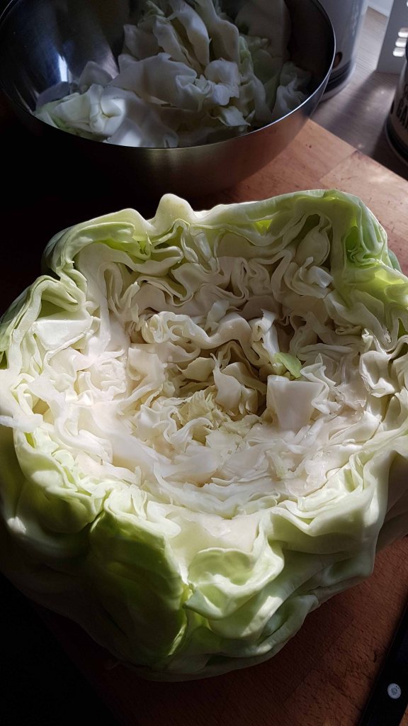* 1 Kohlkopf, je nach gewünschter Menge ein flacher oder ein normal großer, hier war es ein flaches Exemplar