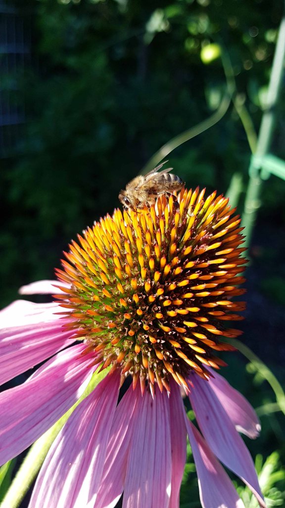 Fast alles, was ich angebaut und gepflanzt habe kannst du essen oder zum Essen verwenden. Heißt, es gibt Obst und Gemüse, unglaublich viele Kräuter wobei wir ein echtes Händchen für Rosmarin und Thymiansorten zu haben scheinen. Es gibt aber auch unbekanntere Wildkräuter und Heilpflanzen. Die Bienen, Hummeln, Schmetterlinge und Co mögen unseren Mischmasch bis lange in den Herbst.