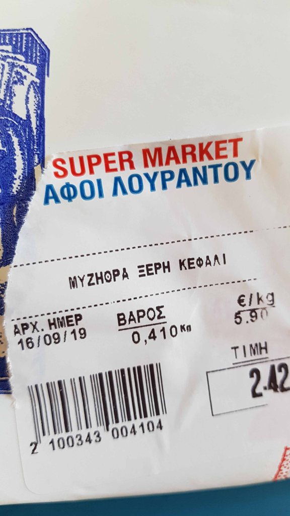 Also der Käse heisst Myzithra und ist von der Konsistenz sehr fest. Aber nicht fest wie ein Hartkäse sondern wie gepresster Frischkäse. Er lässt sich reiben und ist relativ salzig.