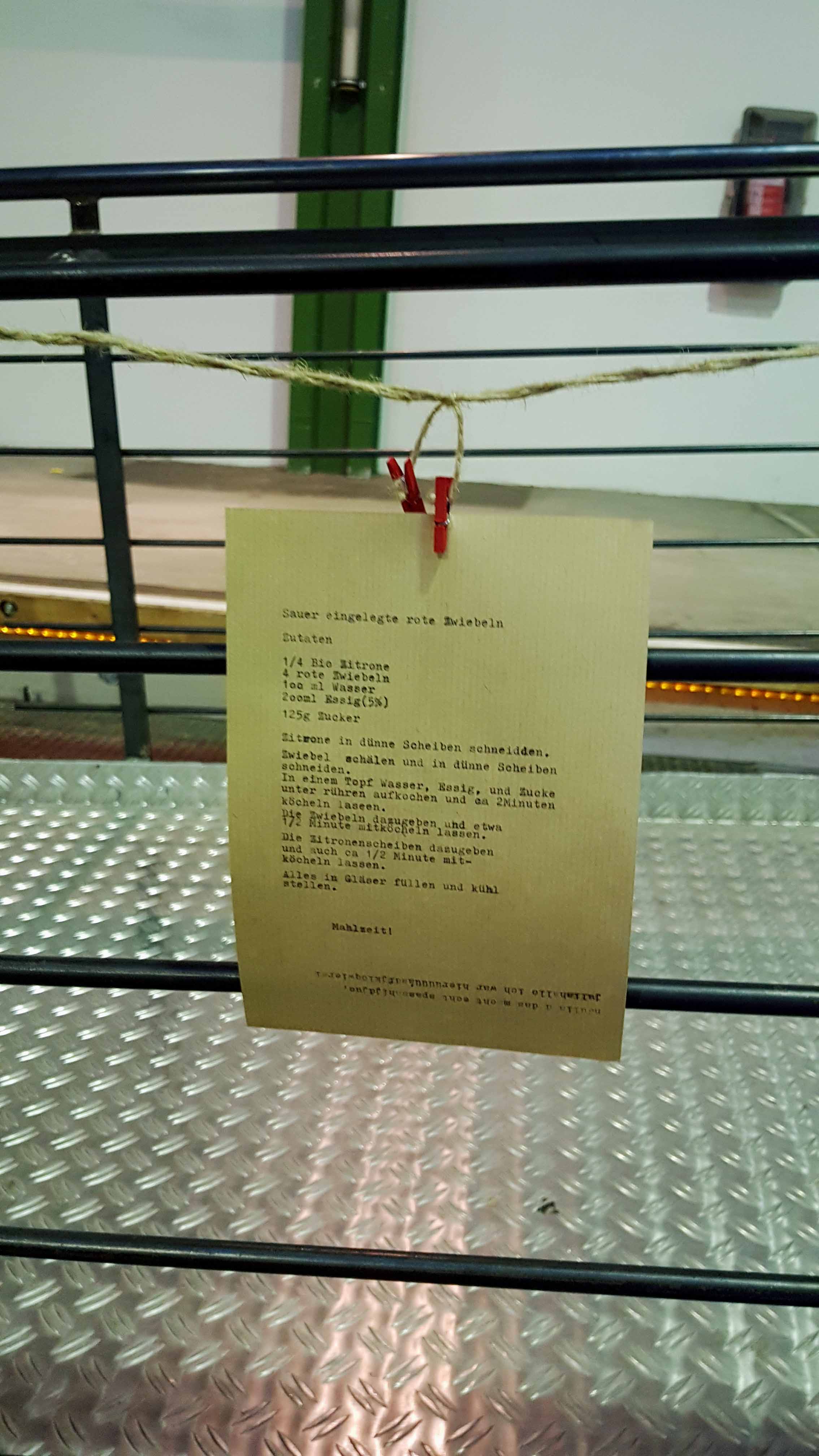Auf einen Wäscheleine sammelten sich Rezepte und auch sonstige Werke der Besucher. Man konnte sich frei bedienen.