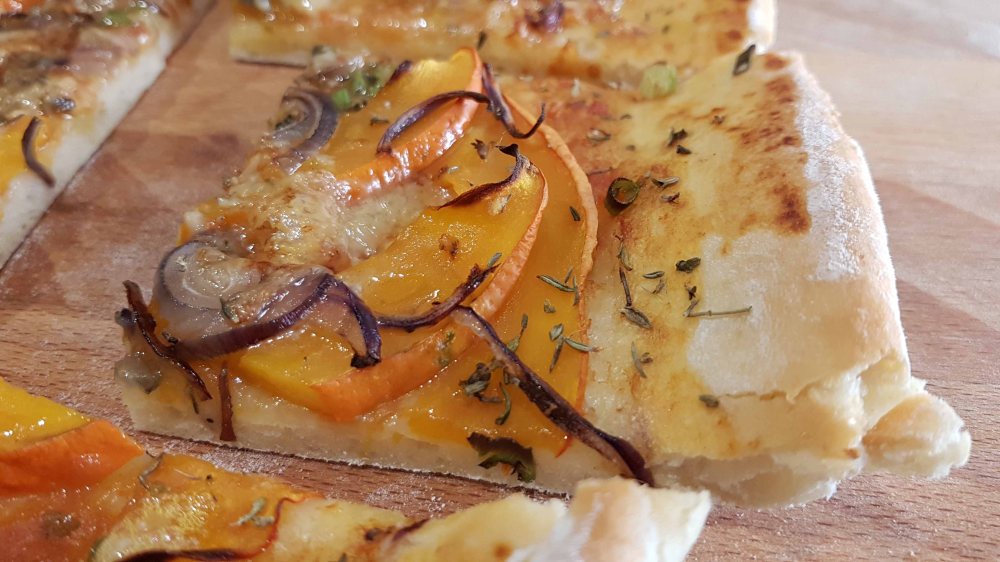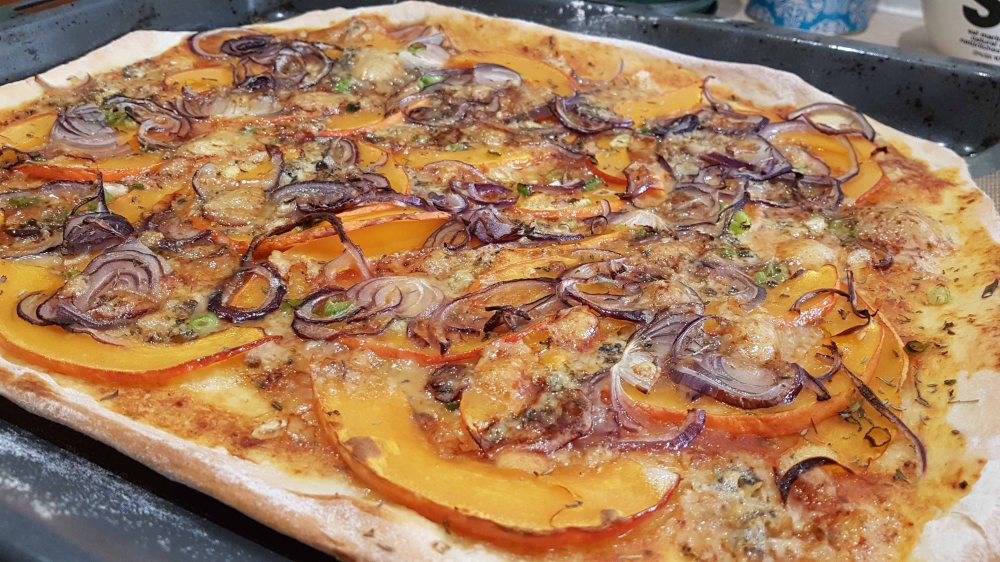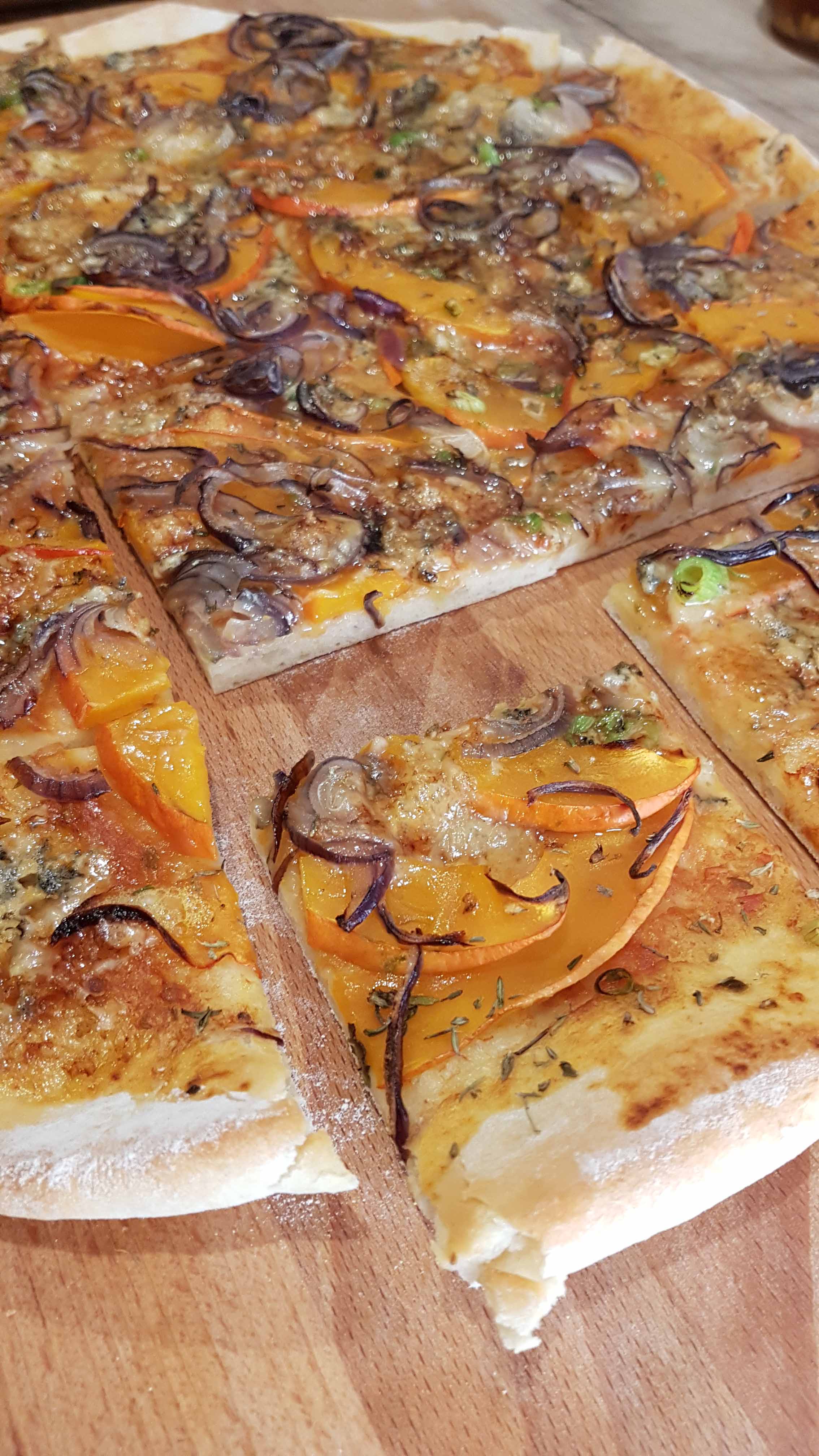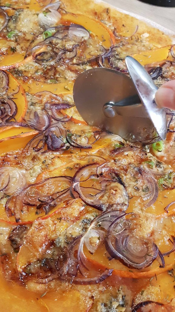 Eine Kürbis-Pizza sollte es werden, in herbstlichen Farben und ordentlich Geschmack.