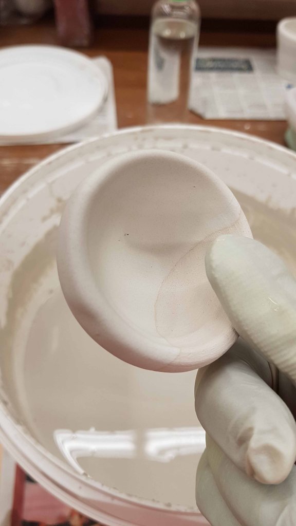 Dass Glasieren auch richtig schief gehen kann hab ich erlebt….nun, Übung macht den Meister. Die Glasur lässt sich durch intensives Waschen wieder vollständig entfernen und nach dem Trocknen kann Versuch 2 starten.