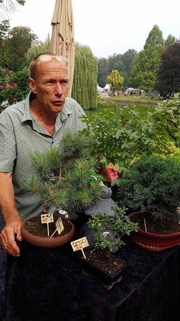 Zum Thema kleine Gärten fanden wir einen Aussteller, der Bonsai-Bäume kultiviert. Wer jetzt einzig an japanische Gärten denkt, der liegt richtig. Interessant fanden wir, dass man alle Bäume zu Bonsai´s machen kann. Nicht nur die obligatorischen Kiefern waren hier zu finden sondern auch Gingkos und Apfelbäumchen um nur einige zu nennen. Das kann ich mir prima auch auf einem Balkon oder einer kleinen Terrasse vorstellen.