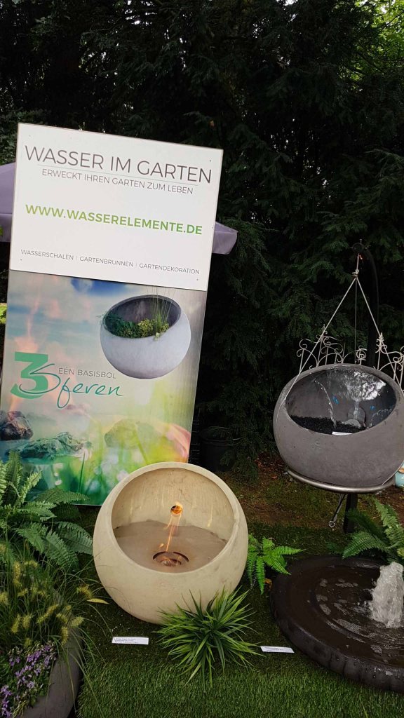 Wasserelemente: extra für kleine Gärten und handgefertigt waren die Betonkugeln von @creastone, die sowohl als Wasserpiel, Feuerstelle, als kombinierte Wasser-Feuerinstallion und als Pflanzkugel konzipiert sind. In verschiedenen Größen erhältlich und in einer runden Verpackung geliefert ! (hat man uns glaubhaft vermittelt, wegen dem Transport, weil rollen einfach ist als schleppen) passt dieses Konzept in wirklich jeden noch so kleinen Garten, Balkon oder Terrasse! Ein wirklich cooles Produkt über das wir ersthaft nachdenken. Das Wasserspiel lässt sich zB zusätzlich mit Pflanzen und Steinen bestücken und dient sowohl Insekten als auch Vögeln als willkommene Wasserquelle. Ein sehr sehr schöne Idee.