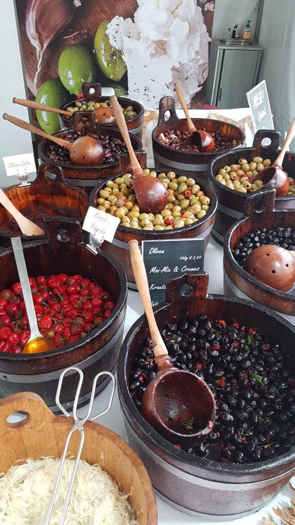 Wer wie wir auf alles mediterrane steht, der blieb natürlich bei Oliven-Ulli hängen. Hier wurden Leckereien aus eigener Herstellung angeboten. feiner französischer Schafskäse in allen Variationen, als Dip, am Stück, verschiedentlich gewürzt, Oliven und noch so vieles mehr wurden angeboten. Die Entscheidung fiel wirklich nicht leicht was man am besten mit nach Hause nimmt.