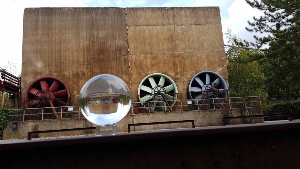 Weiter ging’s dann Richtung Moers zur Halde Rheinpreussen. Man fährt ein kleines Stück bergauf und kann dann sein Auto am Rand parken. Zu Fuss geht es weiter bis zum Plateau. Das Dauer ca 15 bis 20min und lässt sich gut laufen. Oben steht das hübsche rote Grubenlämpchen das “ Geleucht“. Man kann im Inneren eine Treppe hoch steigen und hat dann einen tollen Blick auf das Umland mit seiner Schwerindustrie und den vielen grünen Flecken, den Parks und Wäldern.