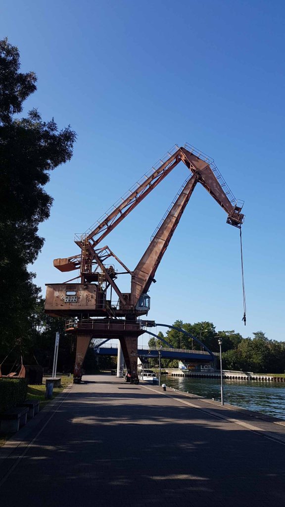 Am Seepark ging´s am Kanal weiter bis zum Preussengafen, der für seinen Kran bekannt ist. Hier gibt es ebenfalls die Möglichkeit eine Pause einzulegen.