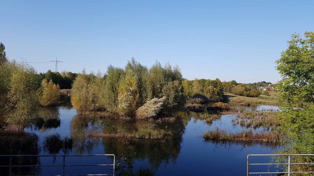 Danach machte wir uns auf den Heimweg. Der Radweg führte uns durch sehr viel Wald und Grün, das war wirklich klasse. Schon fast an der Haustür bei Scharnhorst entdeckten wir noch ein Biotop, ein Vogelschutzgebiet, das wir noch nicht kannten. Es handelt sich dabei um ein idyllisch gelegenes Hochwasserrückhaltebecken welches sich die Vogelwelt erobert hat.