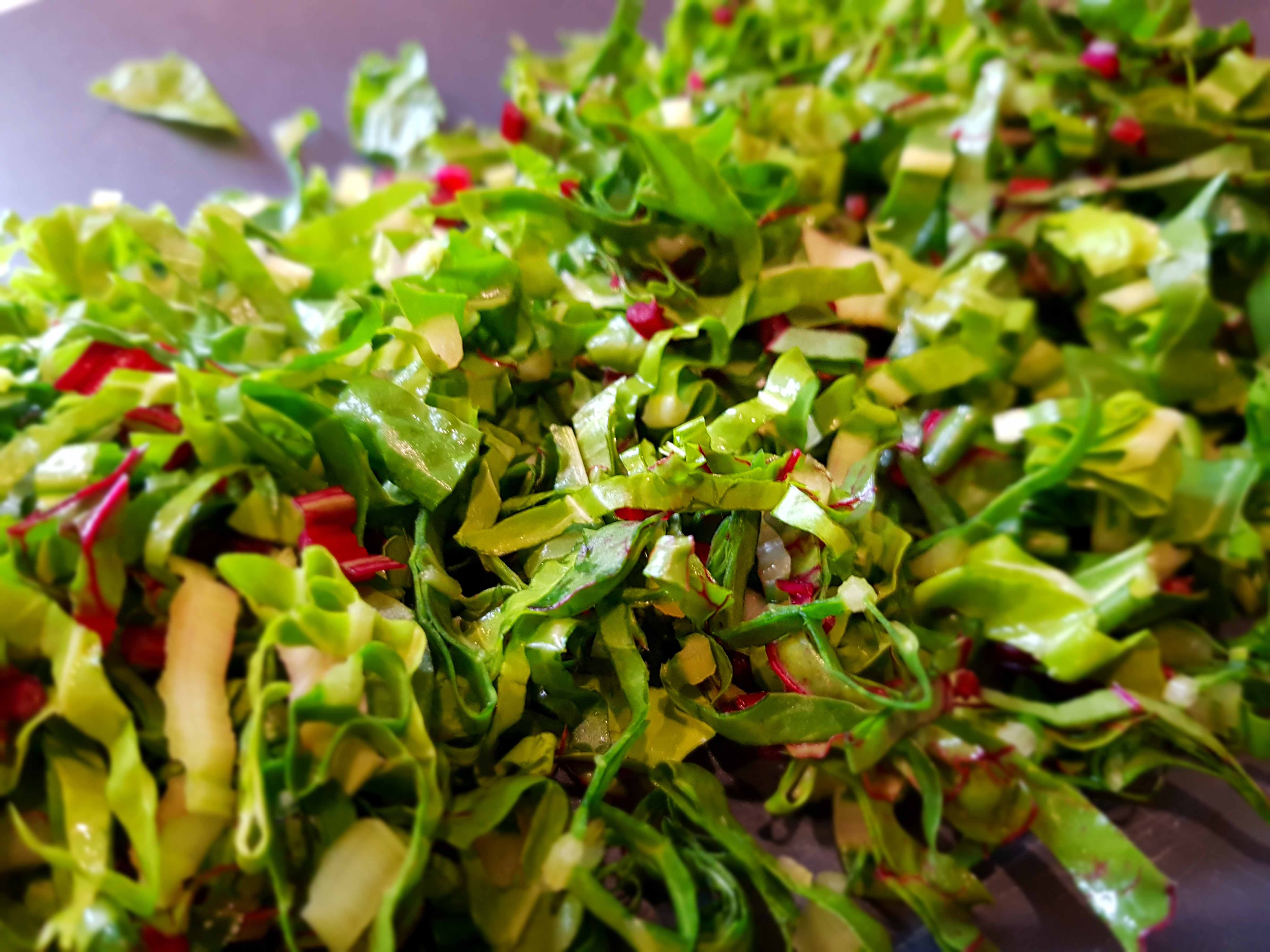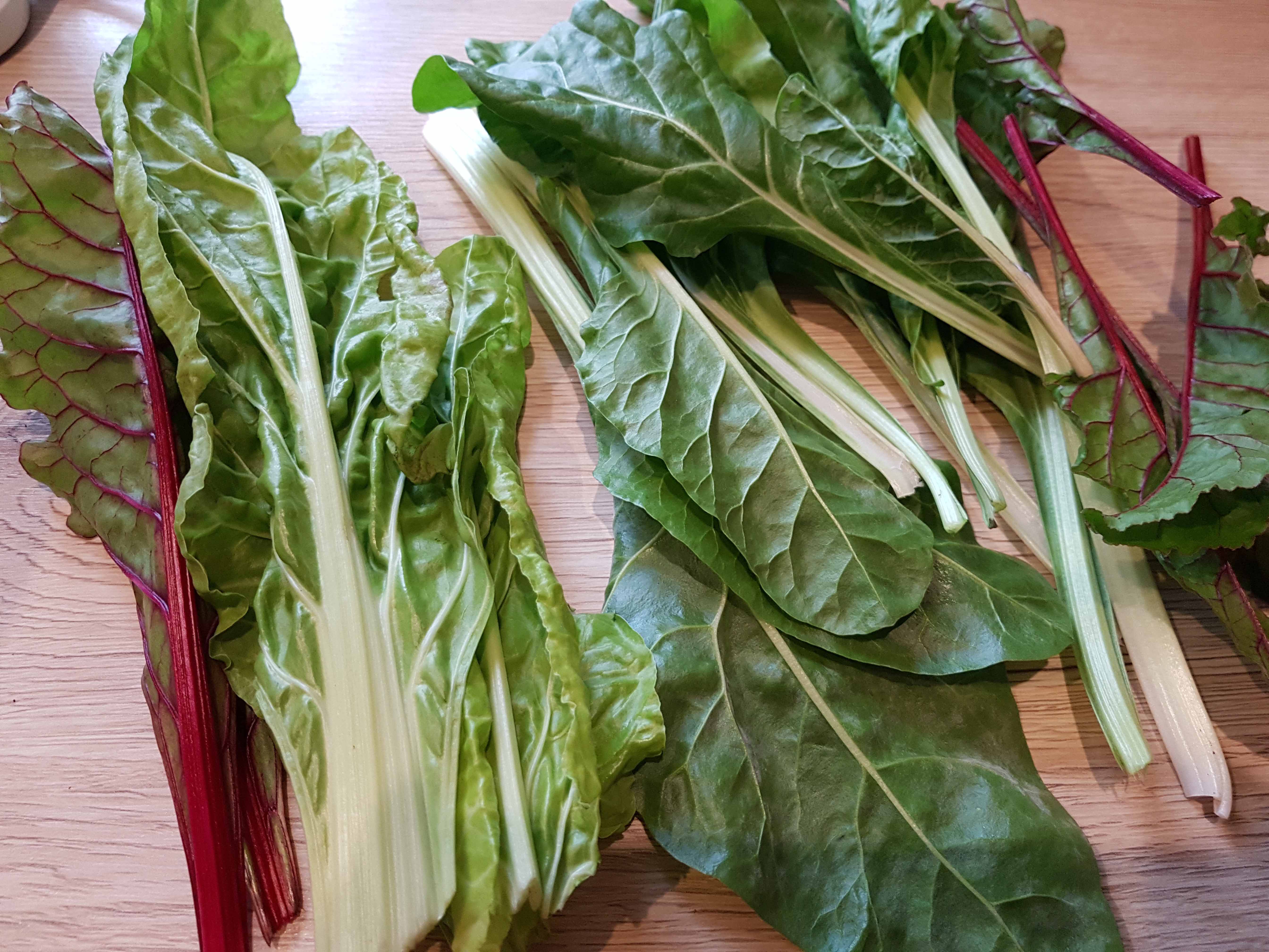 2 Handvoll Mangold fein geschnitten (oder Spinat)
