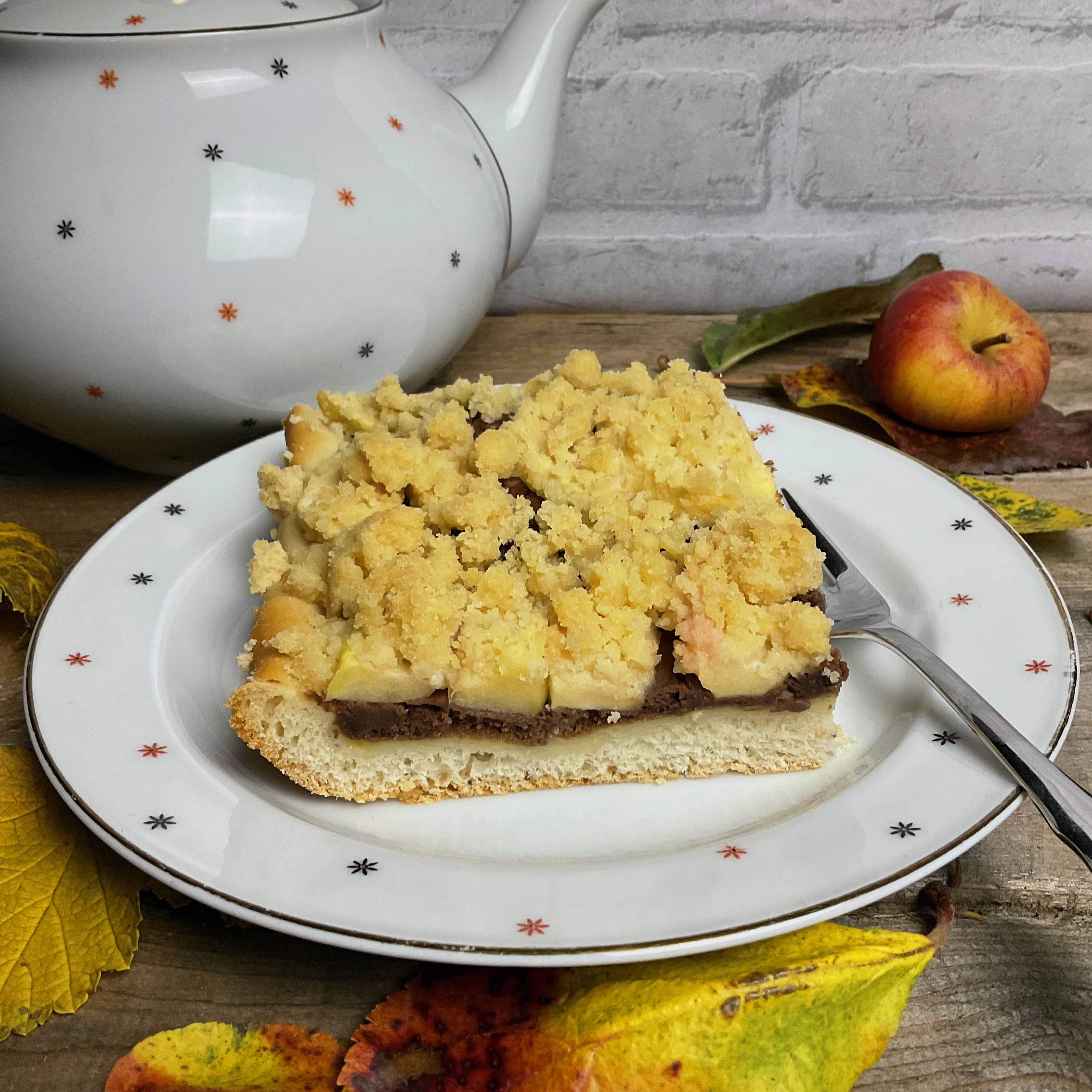 Ich präsentiere den ultimativen Apfelkuchen mit Pudding, Butterkeks und Streuseln.