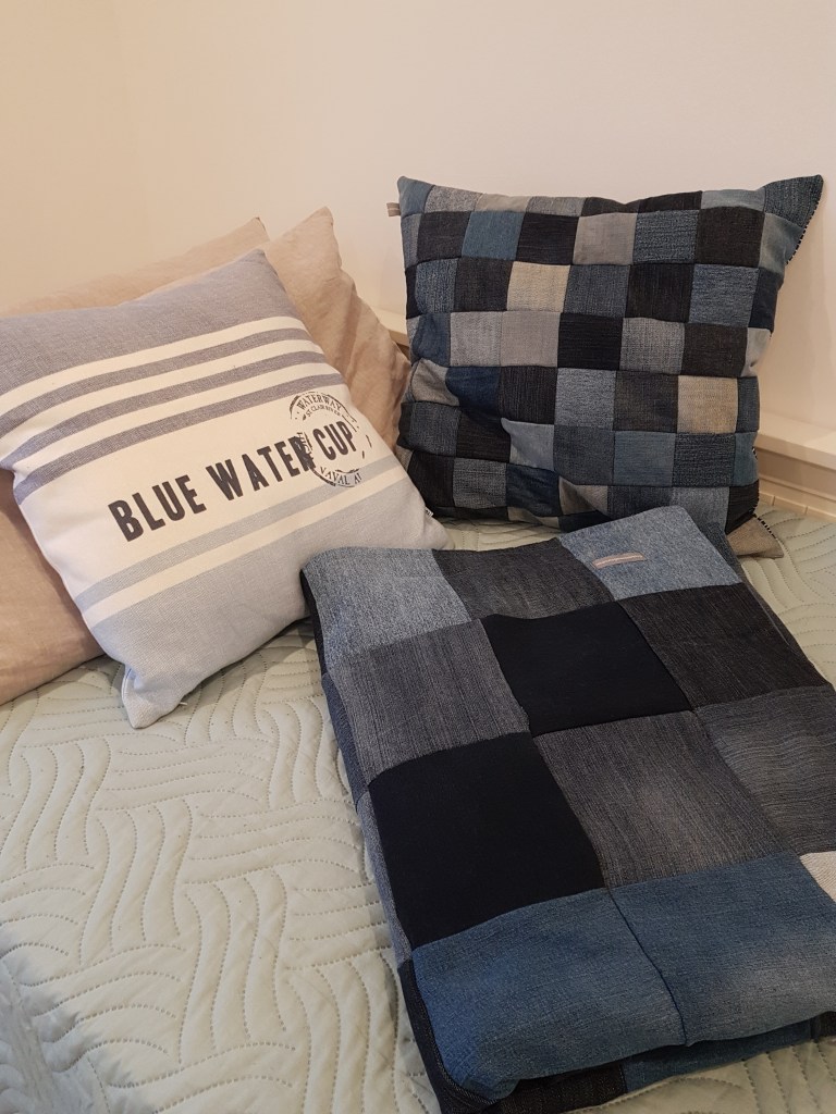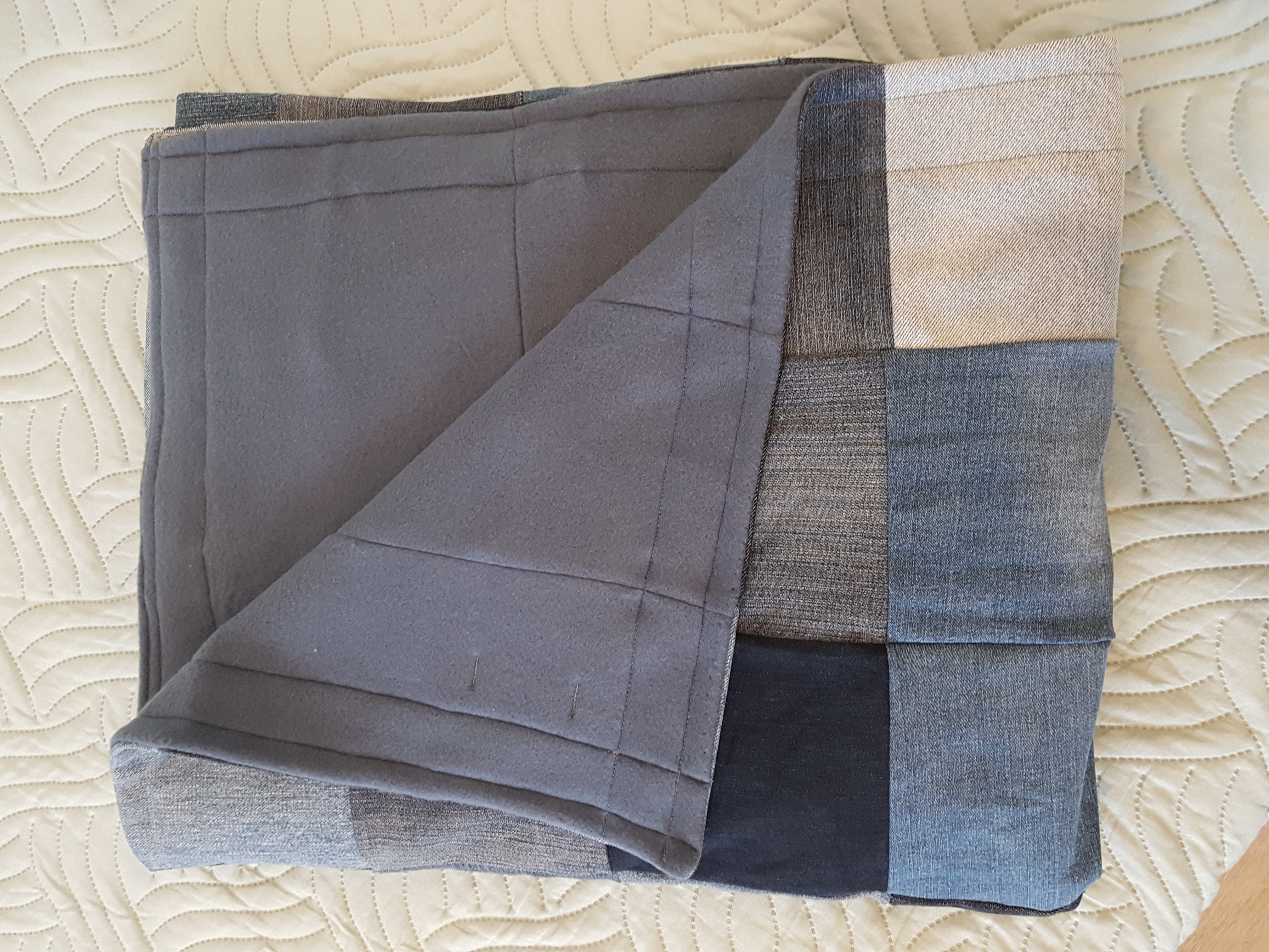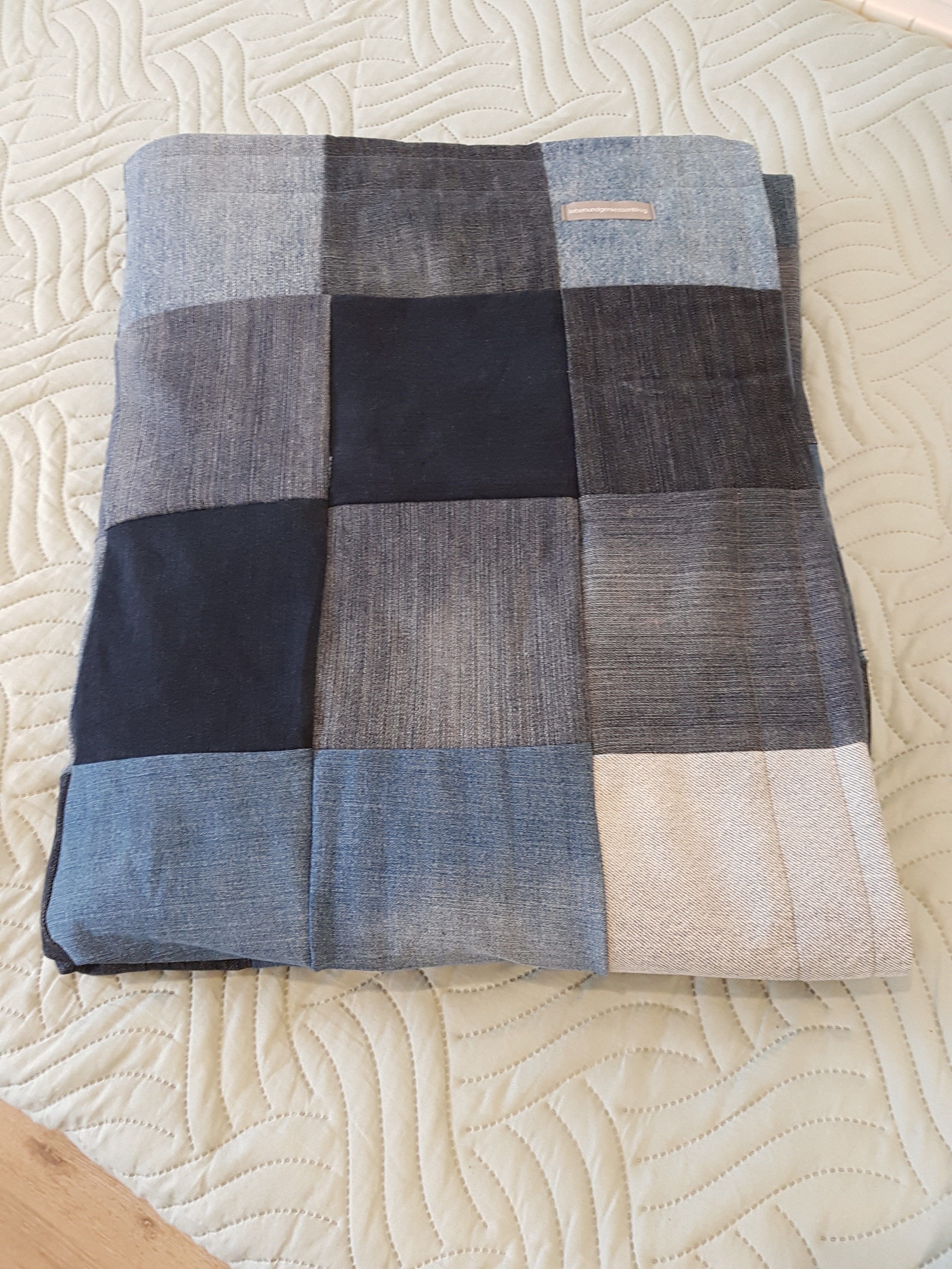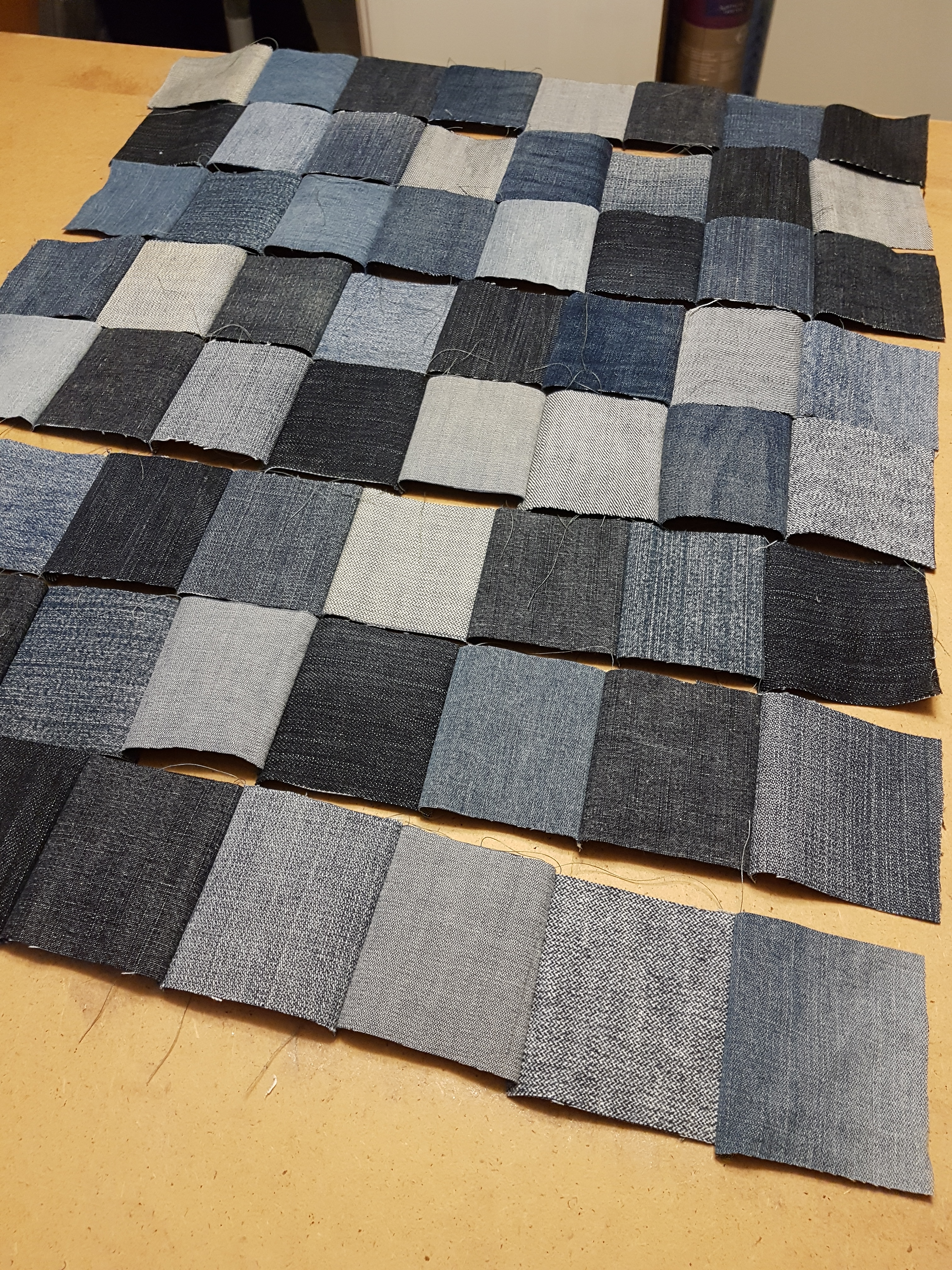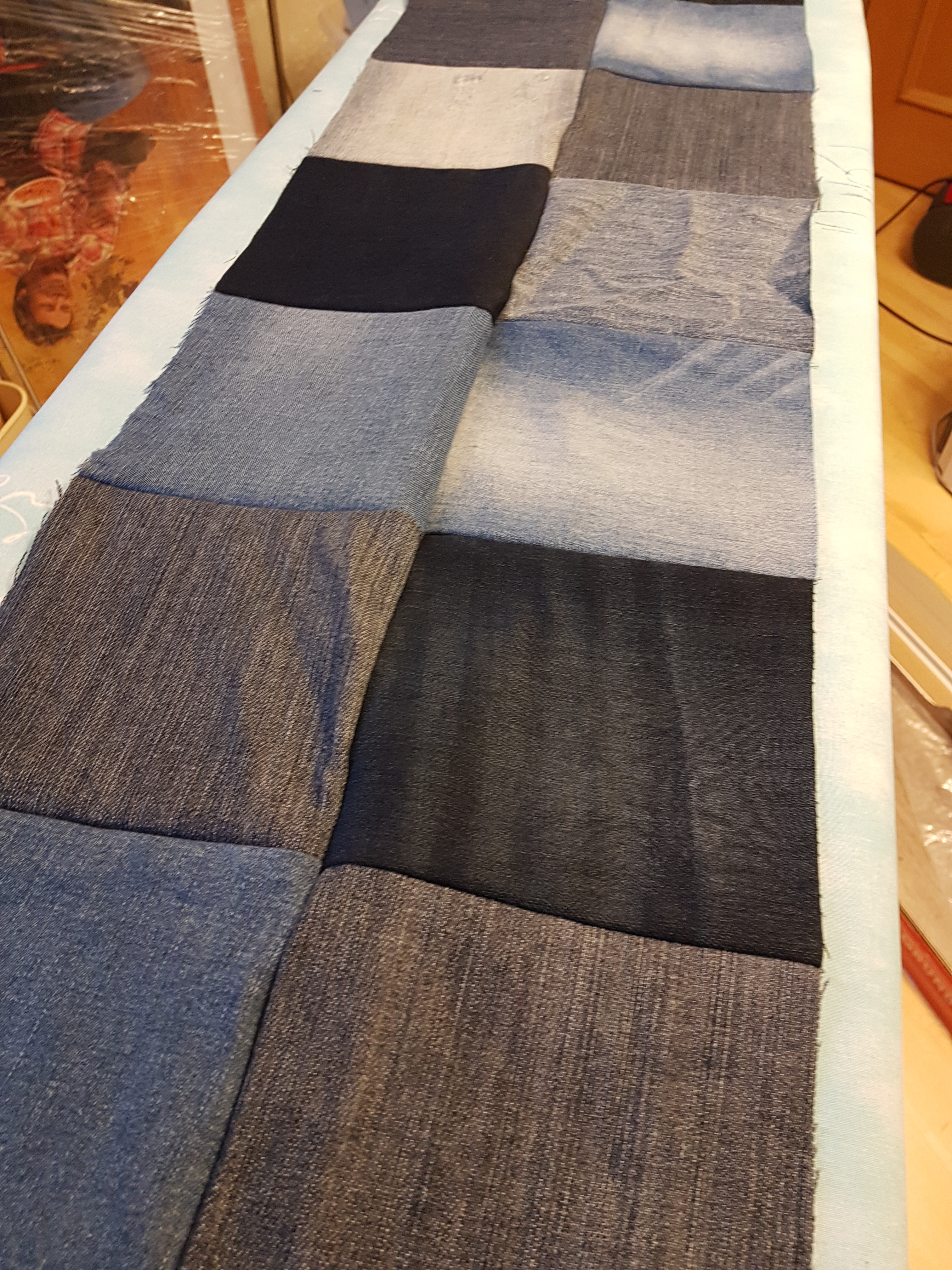 Tja, und dann lagen da noch einige Jeans-Quadrate rum…… ein Kissen passend zur Decke wäre auch schön.