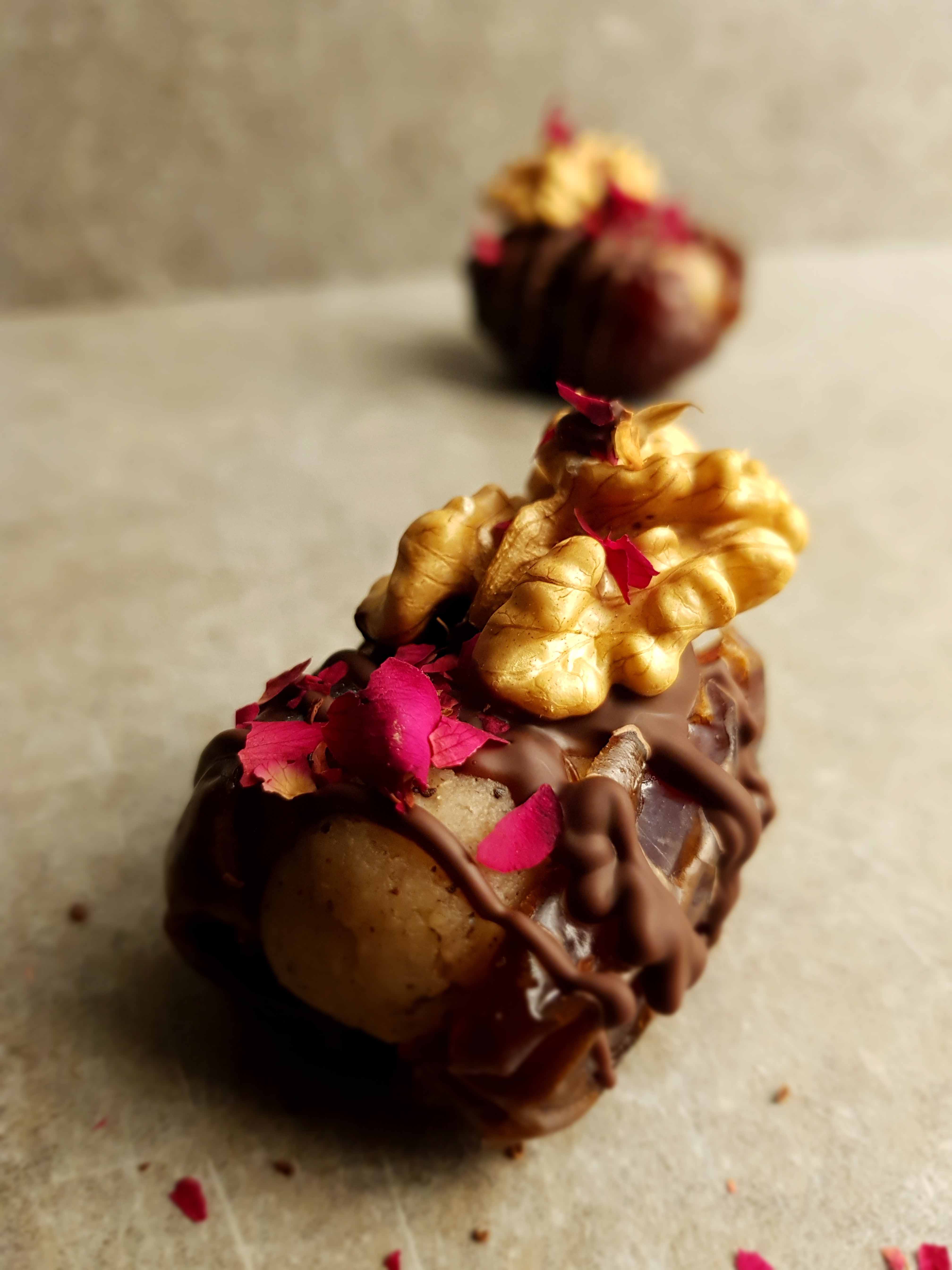 Also der Hauptakteur sind frische Datteln. Und ich meine die richtig Großen, nicht die schrumpeligen kleinen Dinger von denen die Hälfte wurmstichig ist.