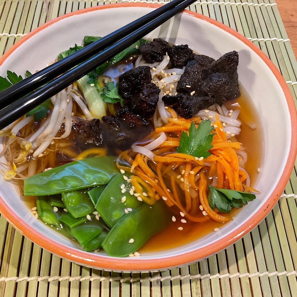 Die Suppe lässt sich auch mit Gemüsebrühe herstellen oder Hühnerbrühe. Statt Fleisch geht auch Tofu oder Sojaeiweisswürfel.