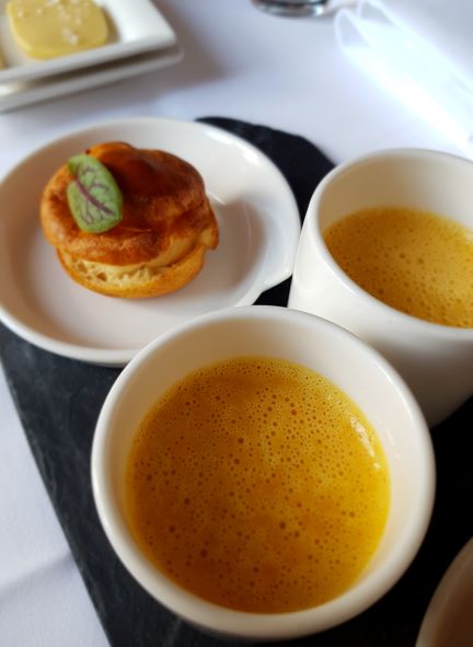 Das Restaurant hat keine Speisekarte. Man bekommt ein Überraschungsmenü und hat die Wahl zwischen 3, 4 und 5 Gängen. Bei den einzelnen Gängen gab es beim Hauptgang dann noch die Auswahl zwischen Fisch und Fleisch (vermutlich auch vegetarisch? das weiss ich nicht genau).