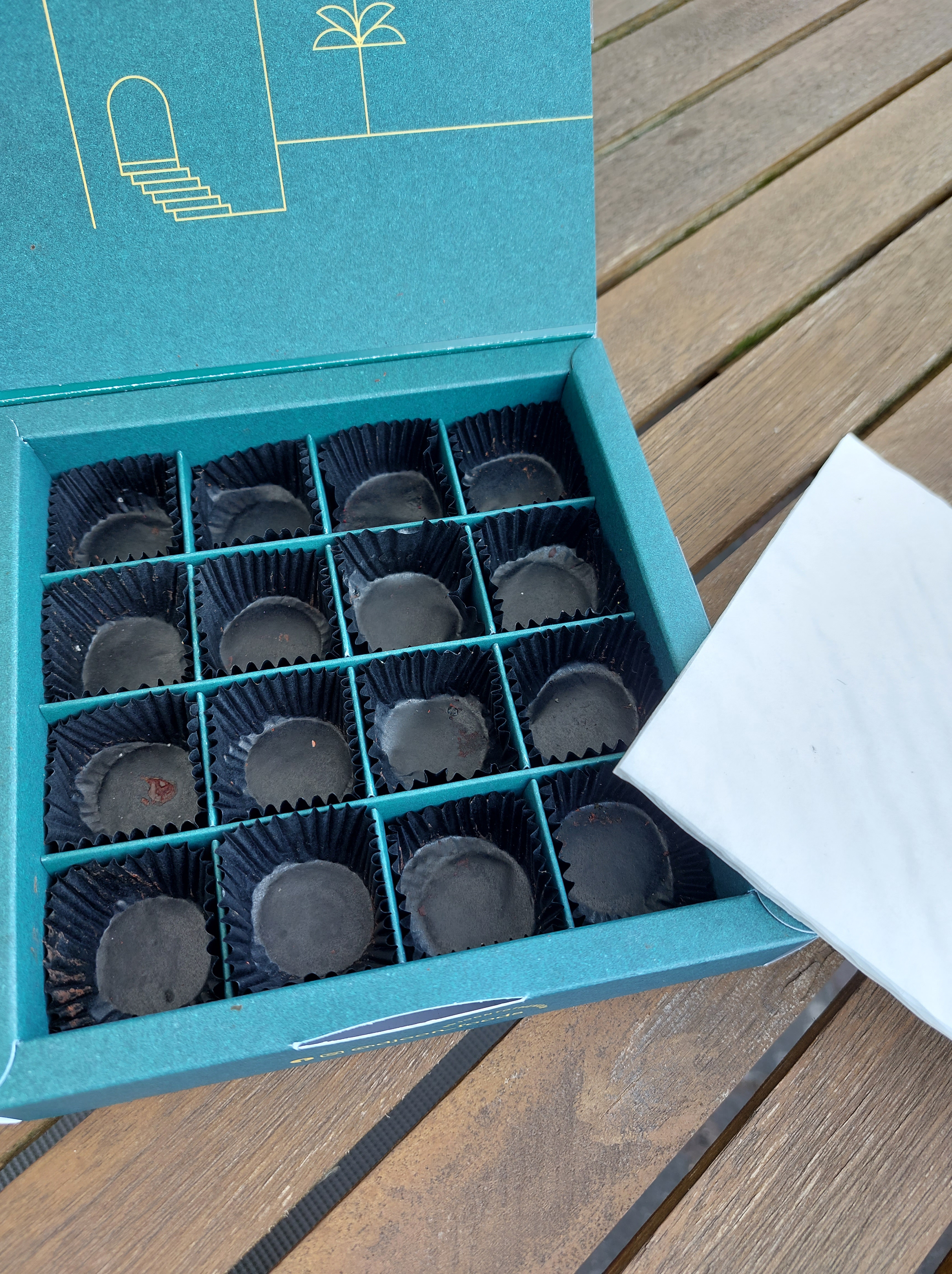 Glücklicherweise lässt sich die Anzahl der Pralinen in der Verpackung durch 2 teilen…. ich fürchte sonst hätten wir uns um die letzte Praline geprügelt.