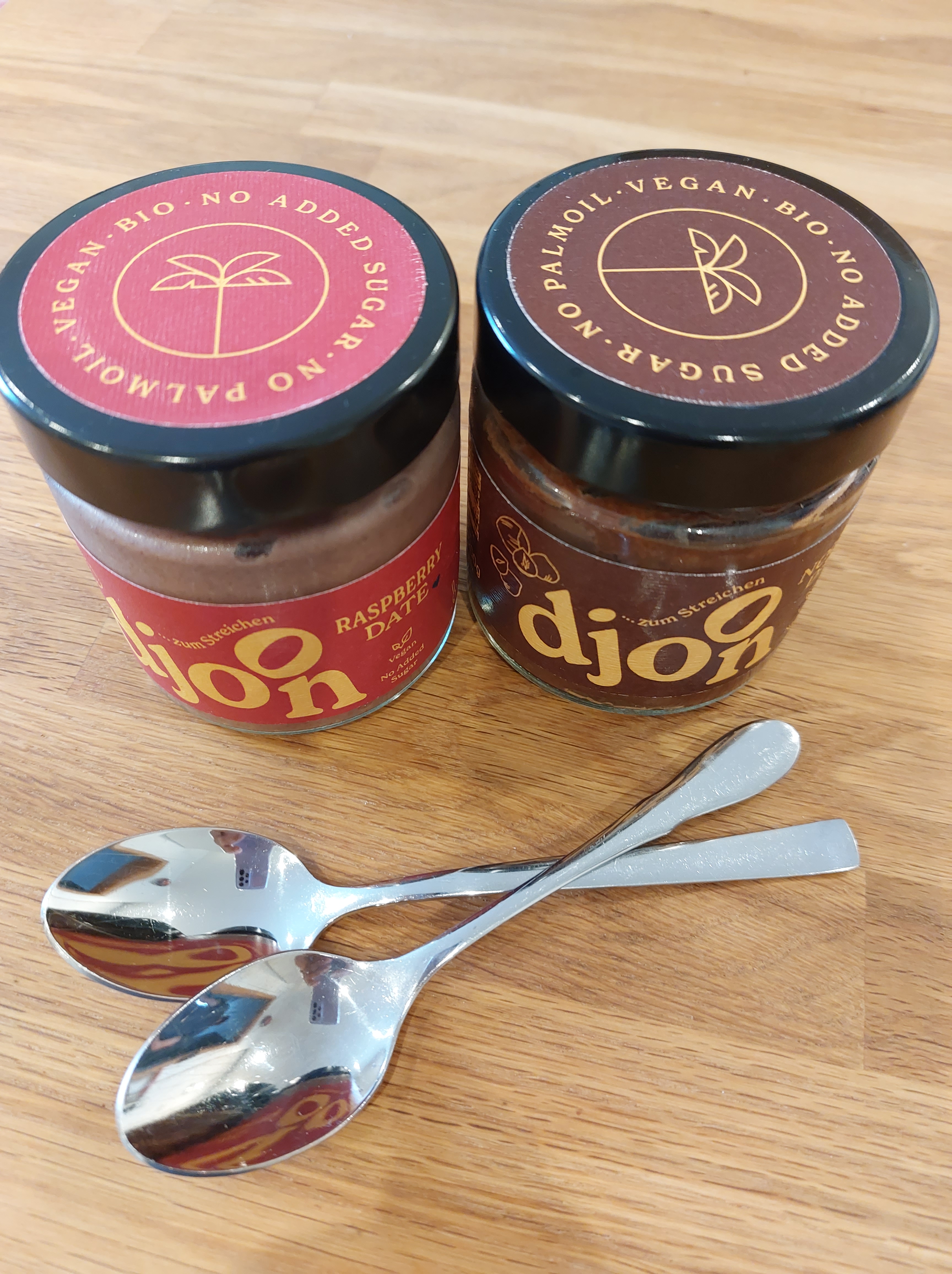Raspberry Date und Nougat Date. Beide Aufstriche ohne Zusätze und Konservierungsmittel, ohne zusätzliche Zugabe von Zucker. Kann das schmecken?
