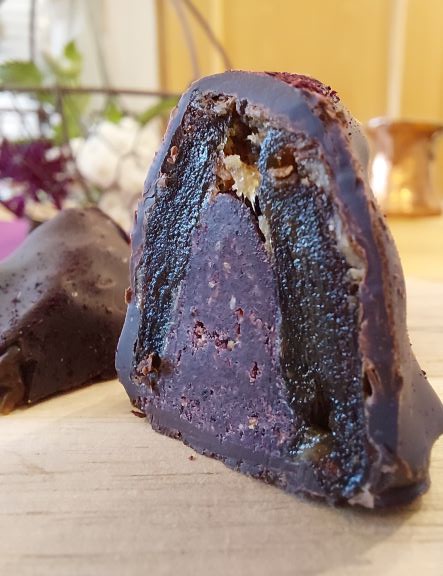 Eine tolle Füllung! Und die besteht auch hier nur aus besten Zutaten, die ebenfalls aus Superfoods bestehen. Früchte und Nüsse sind Bio-Ware und die verwendete Schokolade ist zu 100% aus Kakao. Hier wird nichts gestreckt und durch billige Zutaten ausgetauscht.