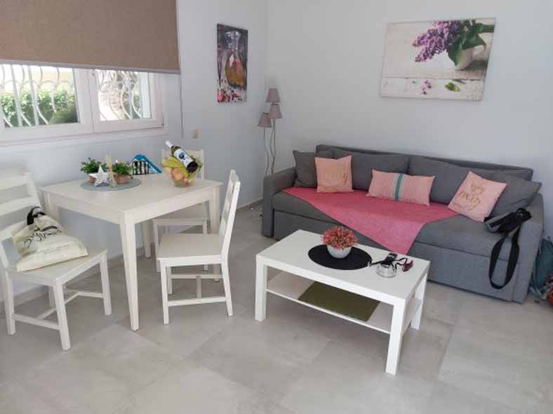 Maria, die Mama der Vermieterin hat uns herzlich in Empfang genommen. Sie sprach zwar nur griechisch, was aber überhaupt kein Problem war. So herzlich und nett. (gebucht über booking.com).