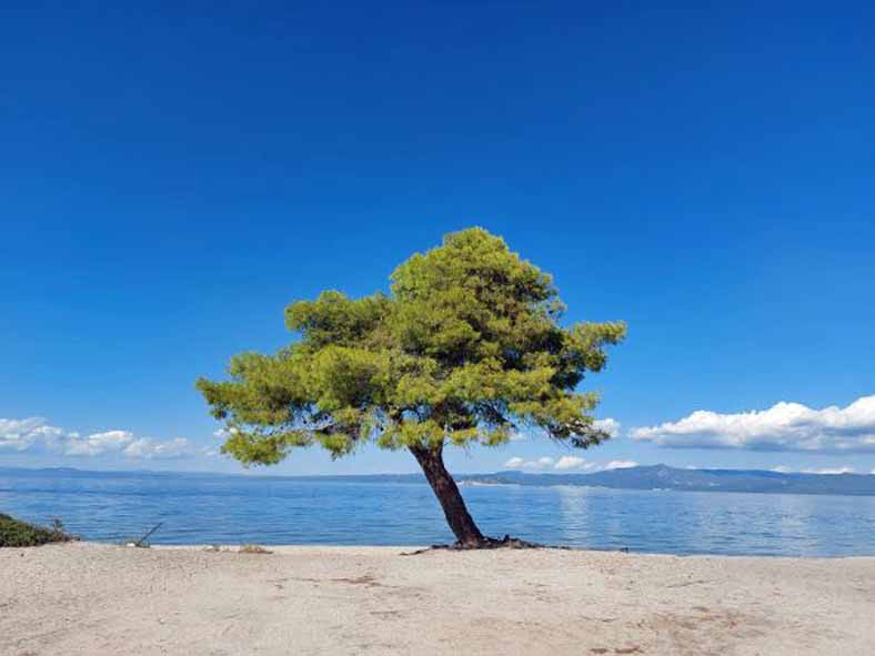 Mit dem Auto waren wir sehr flexibel in der Auswahl unserer Bademöglichkeiten. Etwas außerhalb von Pefkochori fanden wir Strandabschnitte wo wir fast alleine waren.