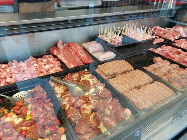 Tipp: noch bevor man zum Supermarkt kommt ist rechts ein Metzger und ein Fischhändler.