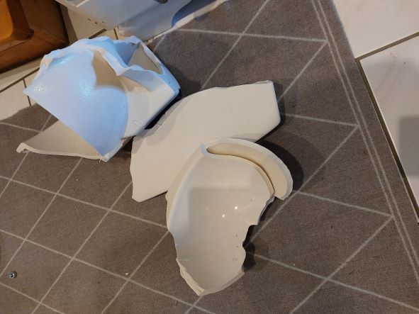Vorsichtshalber Handtücher vor dem Spülen untergelegt. Spülung betätigt, dicht! Strike!
