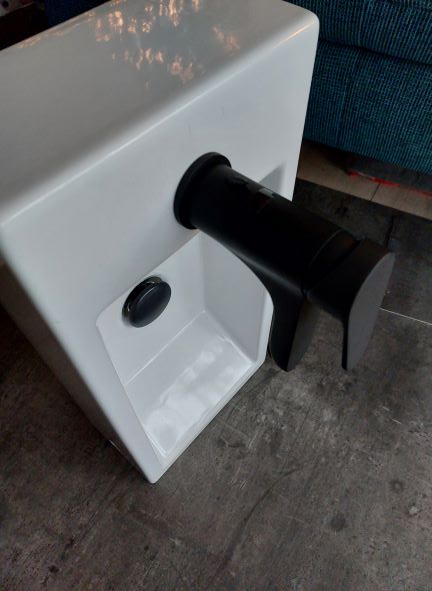Dann sanierte der Nachbar sein Gästeklo und wir erbten sein Waschbecken (ohne Armaturen). Ressourcen nutzen, Nachhaltigkeit, es wird nichts weggeworfen was noch gut ist. Das geerbte Waschbecken sah modern und schick aus und strahlend weiß.