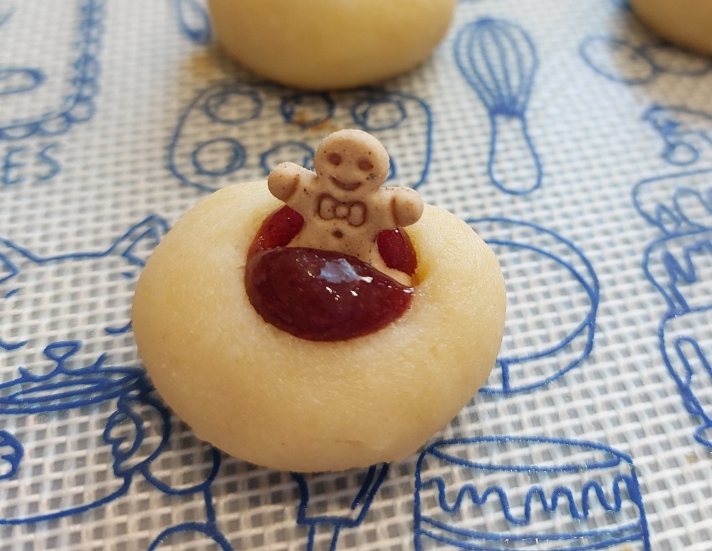 Wer mag setzt jetzt die kleinen Racker* ins „Marmeladen-Badewasser“, Die Plätzchen werden aber auch ohne sehr lecker.