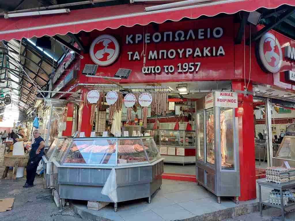 Fisch, Fleisch, Obst, Gemüse, Haushaltswaren, Socken, Oliven, Souvenirs und was man eben so zum Leben braucht wird hier angeboten. Der Markt ist weitgehend überdacht. Ein Bummel lohnt auf jeden Fall. Du findest zwischendurch auch kleine Cafes und Ouzerien um dich zu stärken.