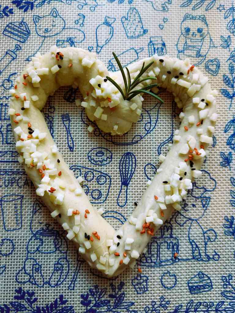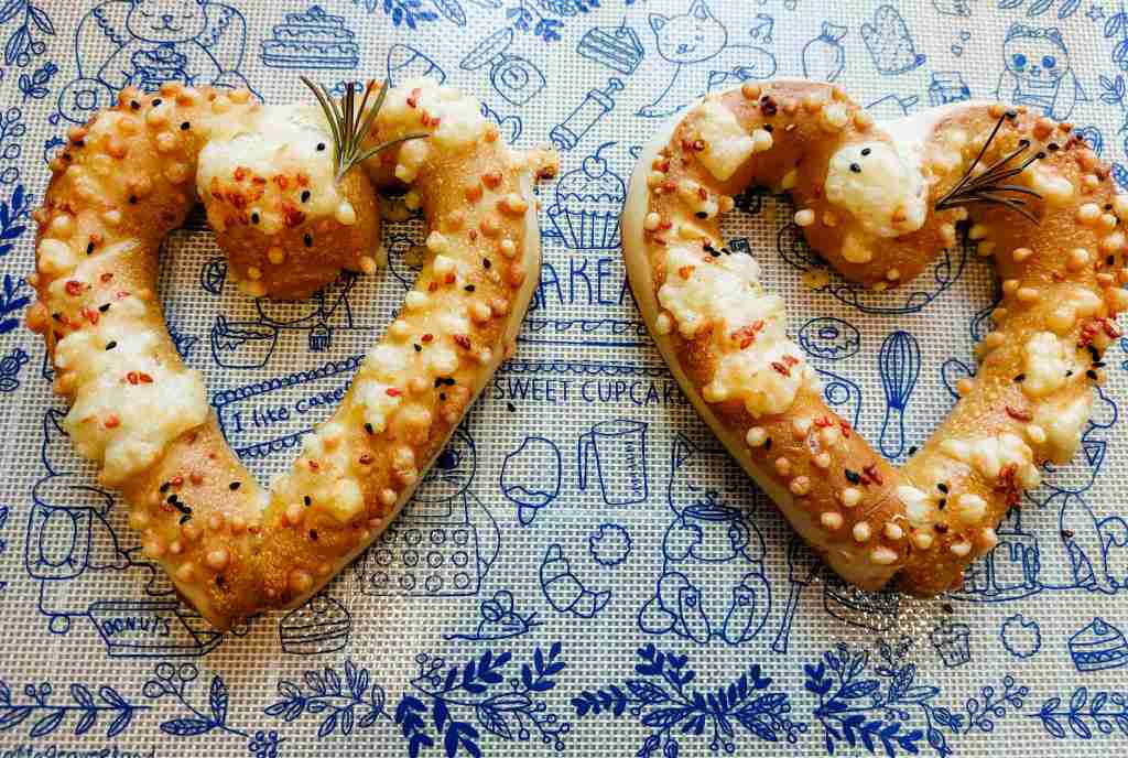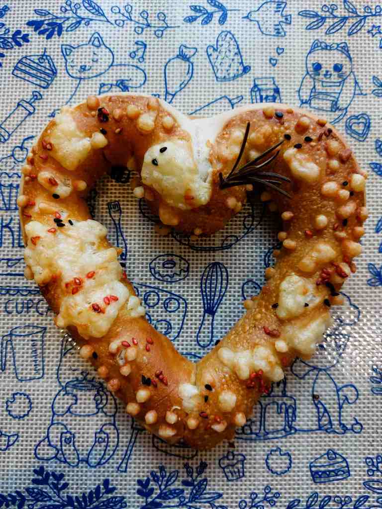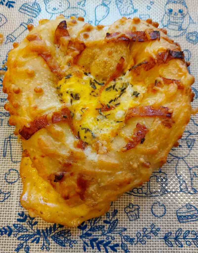 Eine tolle Variante ist ein verkleppertes Ei in der Mitte des Herzens, Käse und Salami, Paprika oder oder.