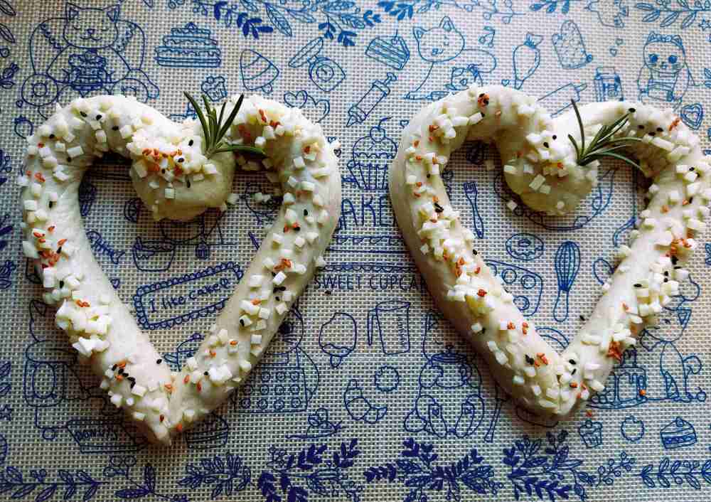 Die Herzen gehen jetzt in den Backofen. Die Backdauer entnimmst du der Verpackung. Bei mir dauerte das so ca 14min bei 180 Grad Heißluft.